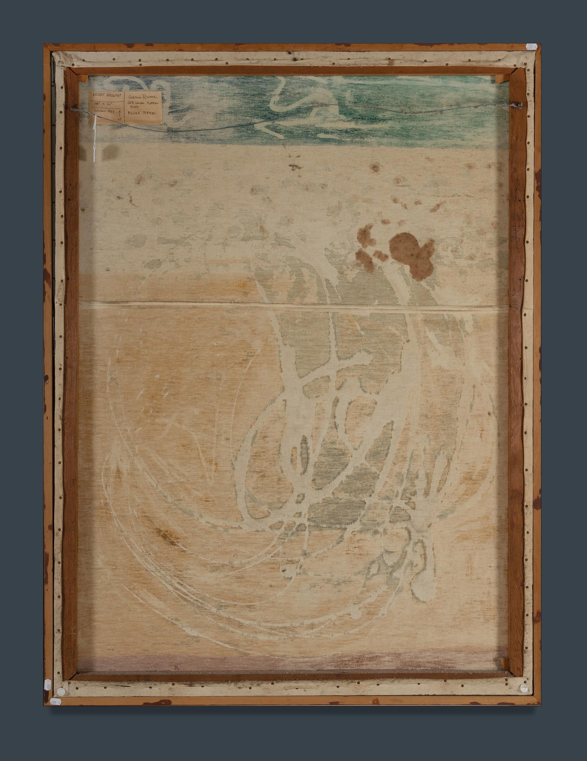 RINTOUL, Gordon (b.1931) 'Desert Growth,' 1967. Artist's label verso. Mixed Media on Canvas 123x91.5cm PROVENANCE: Estate Late James Gordon BrownlowEstimate $200-400