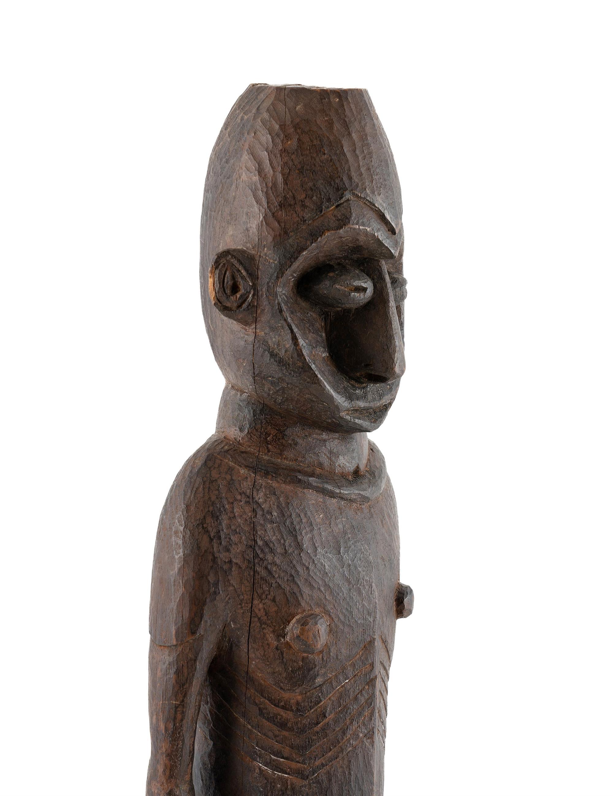 Rare Ancestor Figure, Porapora River Region, New Guinea. Figurative carving from this region is extremely rare, in fact many institutions do not have examples. Collected in the 1970s. (H91cm) Estimate $750-1,000