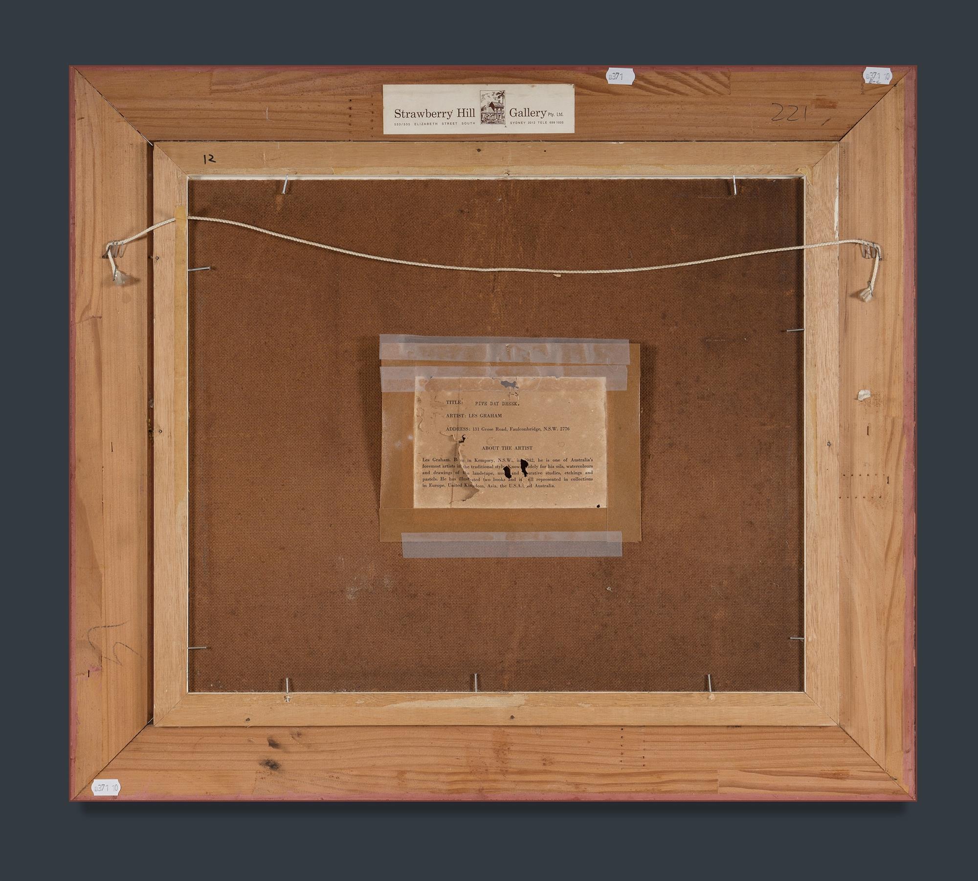GRAHAM, Les (b.1942) 'Five Day Creek [NSW]' Gallery labels verso. Oil on Canvas on Board 37x44cmEstimate $120-200