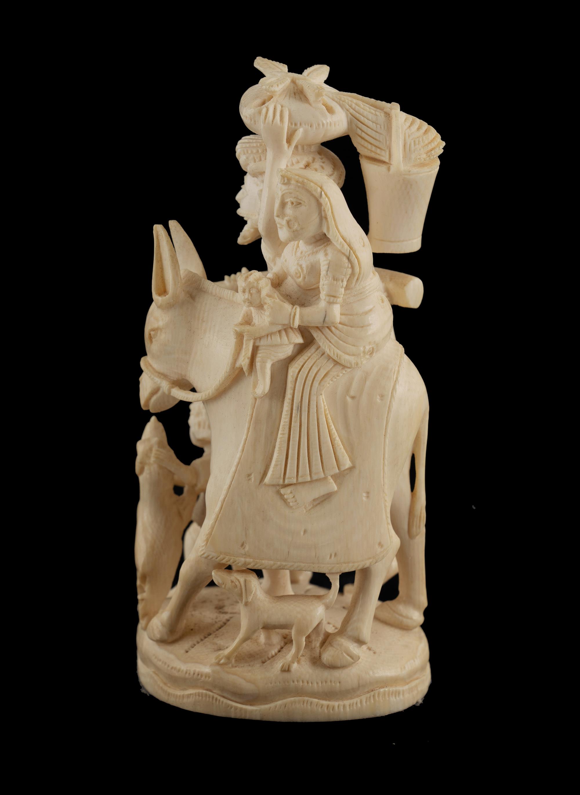 Early 20th Century Indian Ivory Carving Family figure group depicting a man, together with his wife riding a donkey. NB: ivory export restrictions. (H13cm) Provenance: Deceased Estate, Sydney.Estimate $300-600