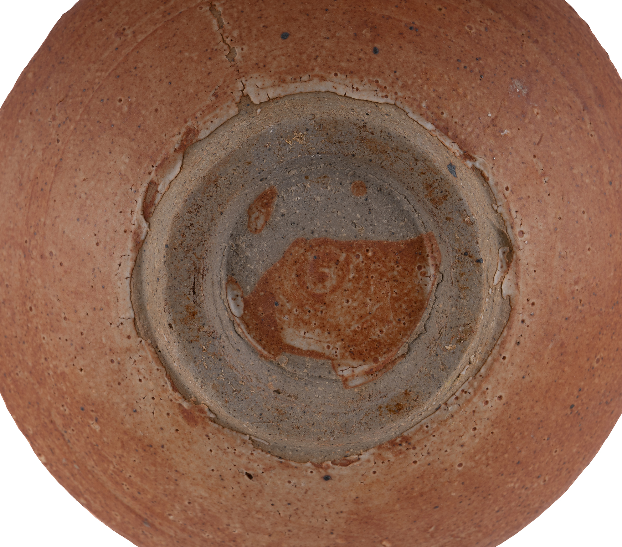RUSHFORTH Peter (1920-2015), Stoneware Teapot With incised chevron decoration & cane handle. Impressed potter's mark to foot rim. H26cm (incl. handle)Estimate $200-400