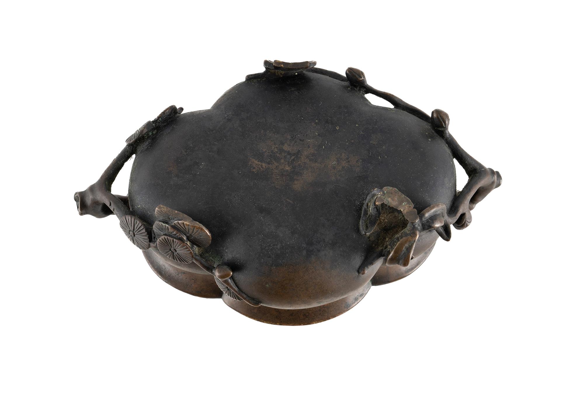 Chinese Qing Dynasty Bronze Censer with Carved Rosewood Stand and Cover H16cm (incl. stand) L14.5cmEstimate $400-600