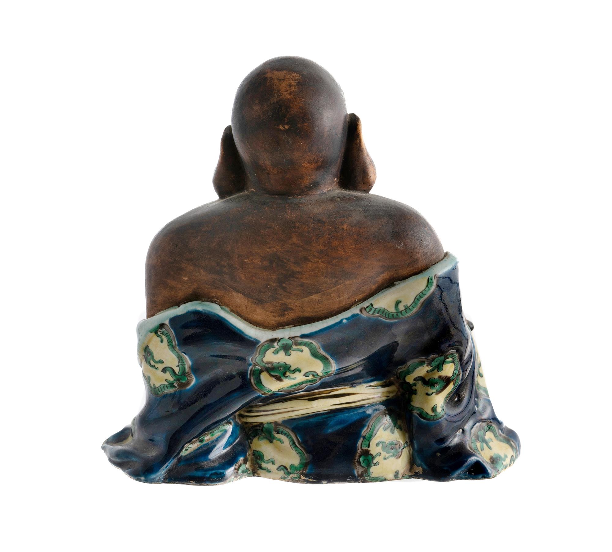 Japanese Kutani Ware Figure of a Hotei, Meiji or Showa Period. Small chip to lower right edge. (H21cm)Estimate $70-120