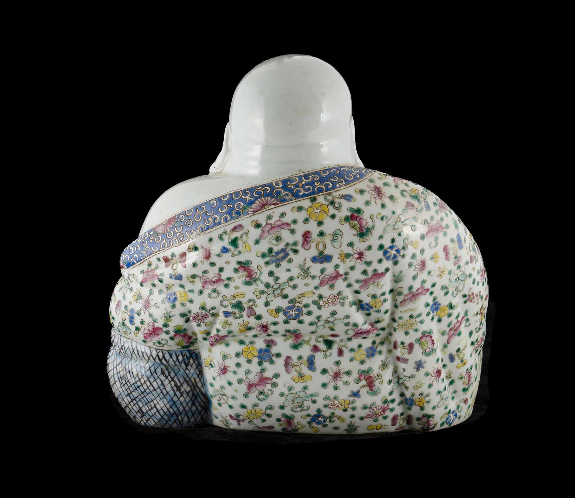 Chinese Republic Period Famille Rose Buddha Budai. Impressed seal mark. Crack through foot. (H25.5cm) Estimate $200-300