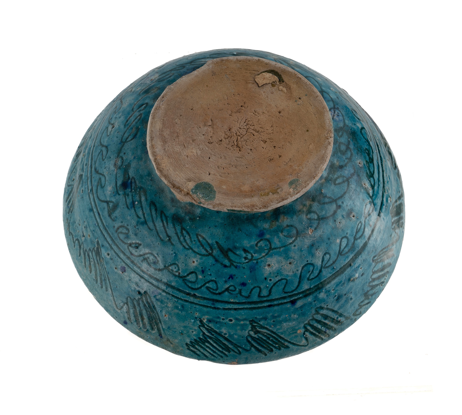 2 Persian Pottery Bowls with Incised Floral Decoration. A/F chips, spur marks. (D23.5cm, & 22cm)Estimate $80-120