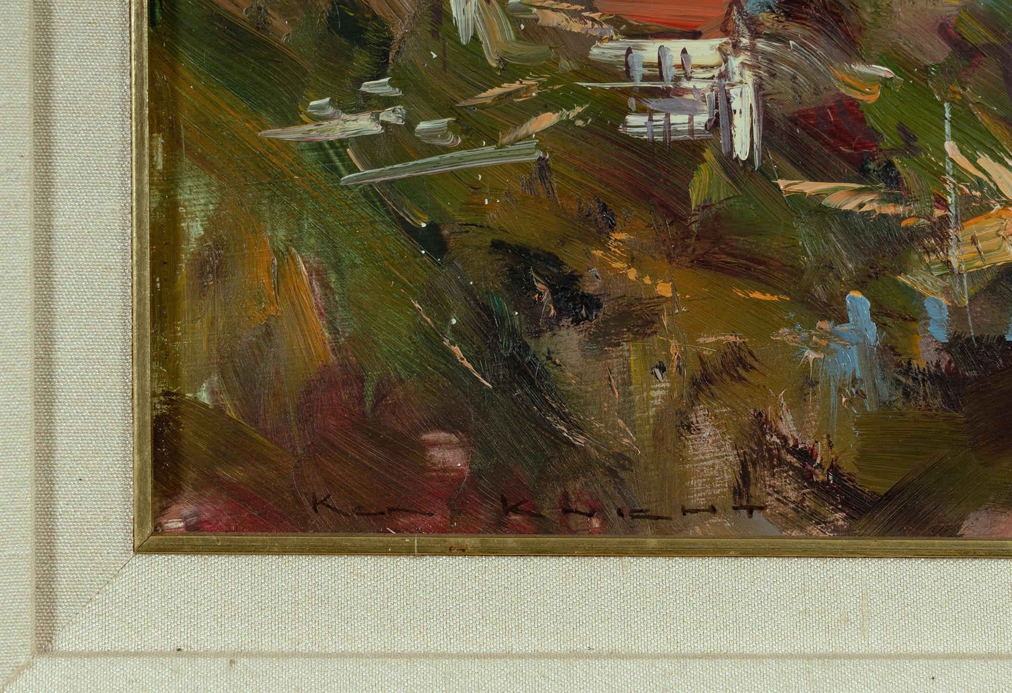 KNIGHT, Ken (b.1956) 'Afternoon Light - Middle Harbour,' 1987. Titled verso, with additional signature & date. Oil on Board 29.5x60cmEstimate $800-1,500