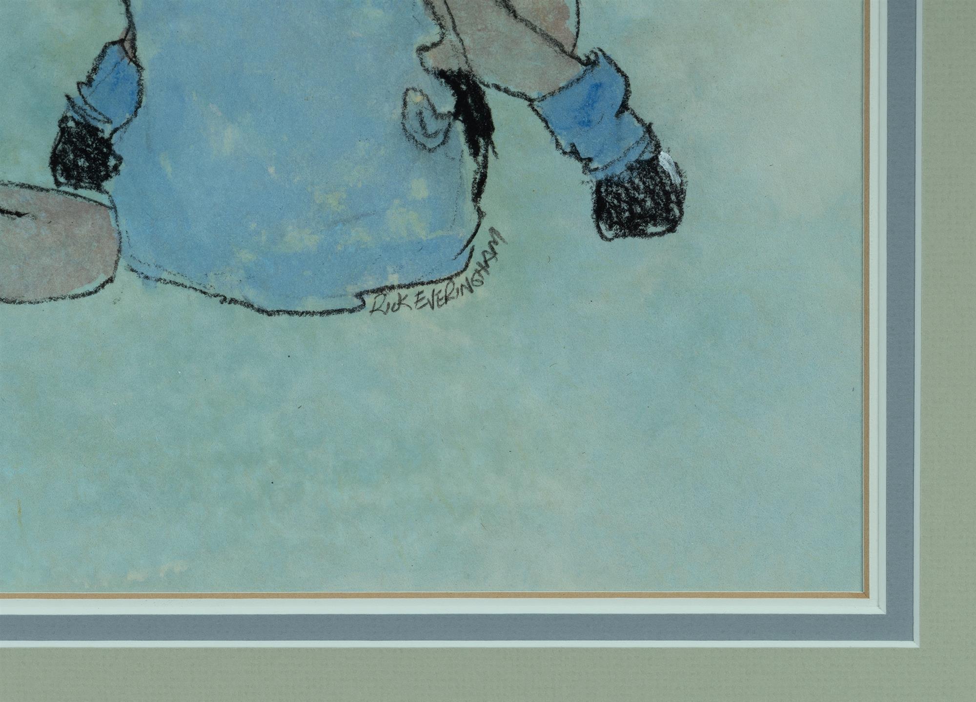 EVERINGHAM, Rick (b.1945) 'Blue Football' Artist label verso. Pastel & Gouache 33.5x39.5cmEstimate $100-200