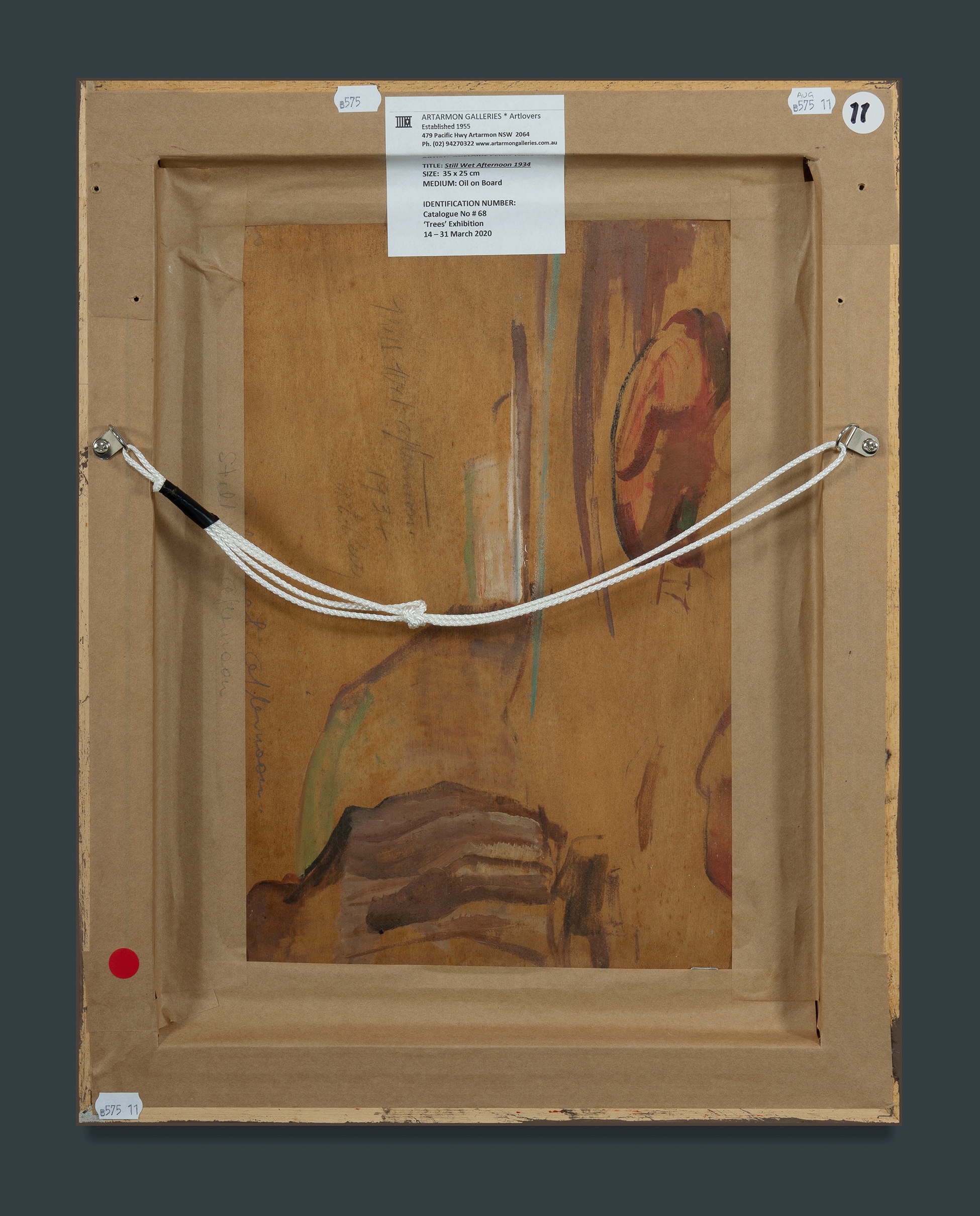 PERRY, Adelaide Elizabeth (1891-1973) 'Trees, Wet Afternoon,' 1934. Exhibited Artarmon Galleries 'Trees' March 2020 cat #68 (label verso). Oil on Ply 35x25cm PROVENANCE: A private collection, Sydney.Estimate $700-1,200