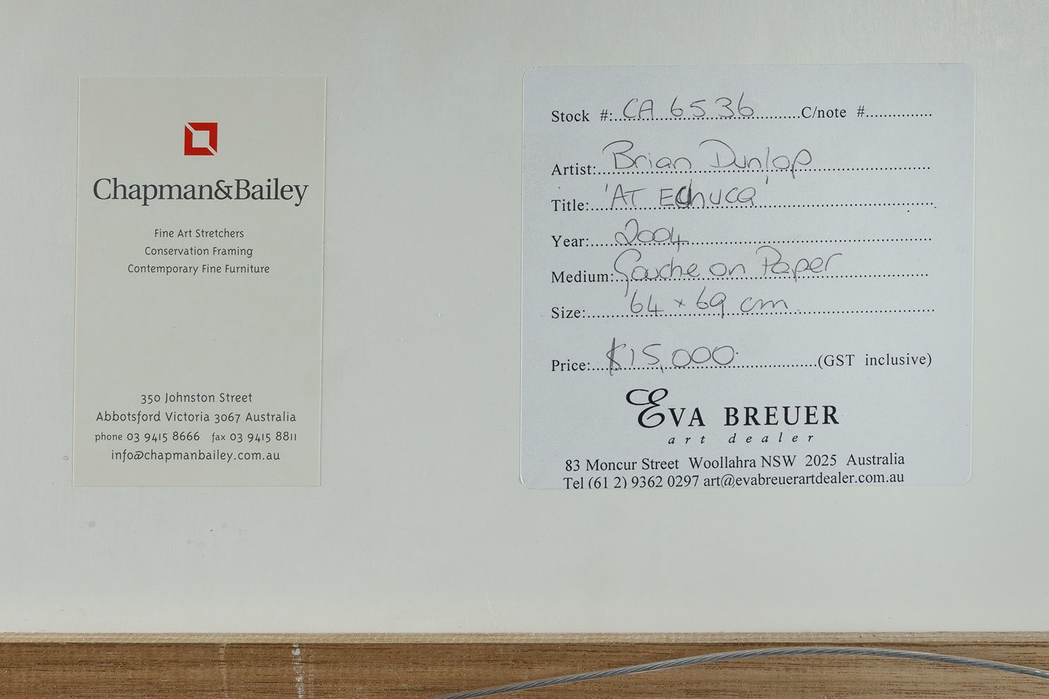 DUNLOP, Brian (1938-2009) 'At Echuca [Victoria]' 2004. Eva Breuer Art Dealer, Sydney, label verso. Gouache on Paper 63x69cmEstimate $1,000-2,000