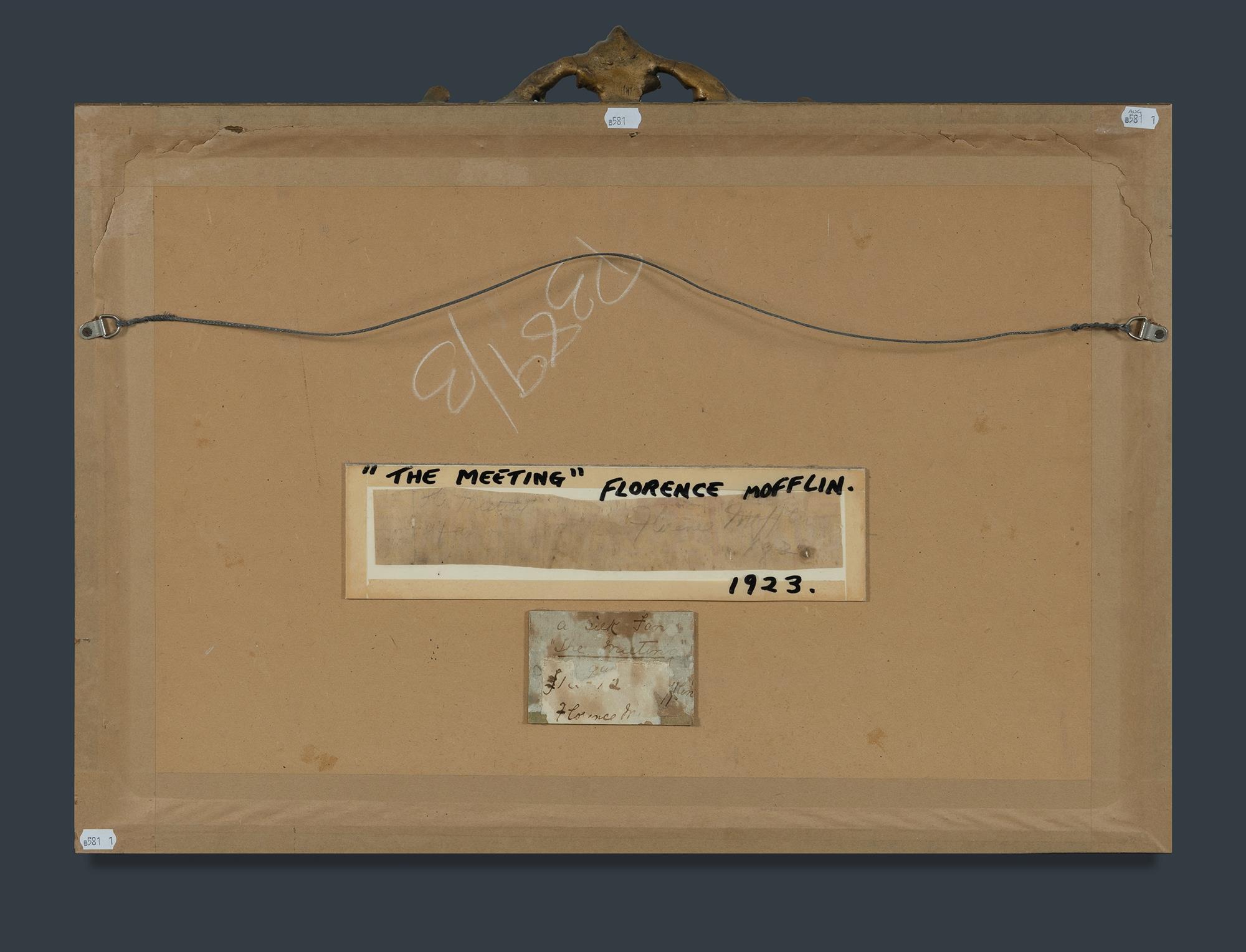 BLAKE (MOFFLIN), Florence Turner (1873-1959) The Meeting - a Silk Fan,' 1923. Old inscription verso. W/Clr on Silk 21.5x50.5cm (fan)
