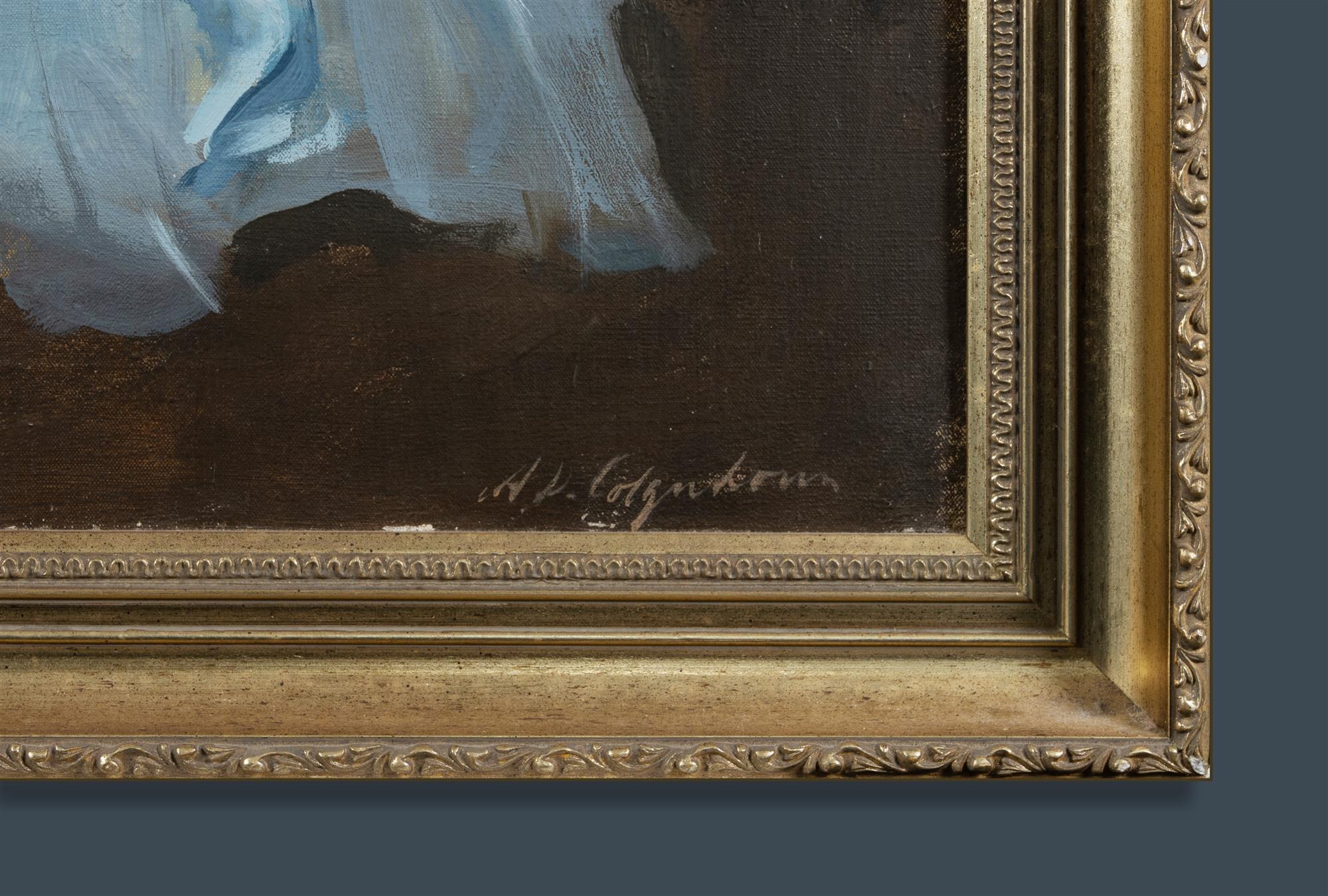 COLQUHOUN, Archibald (1894-1983) 'The Formal Gown / Portrait of Pauline Griggs,' 1951. Accompanied by a letter dated 1985 from the sitter, with additional information on the painting and artist. Oil on Linen 170x83cmEstimate $2,000-4,000