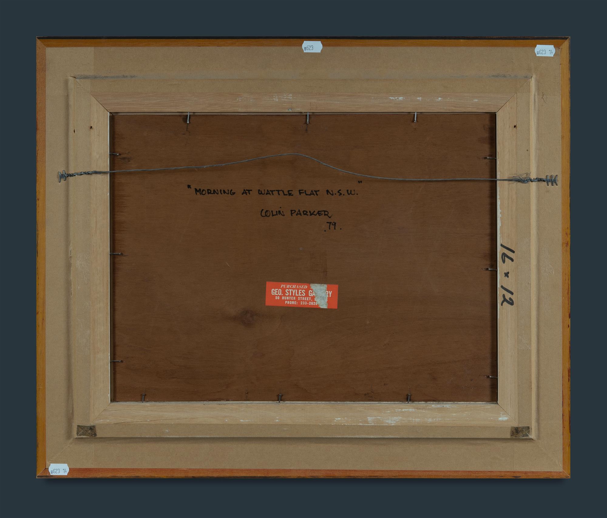 PARKER, Colin (b.1941) 'Morning at Wattle Flat, NSW,' 1979. Oil on Ply 29x39cmEstimate $275-450