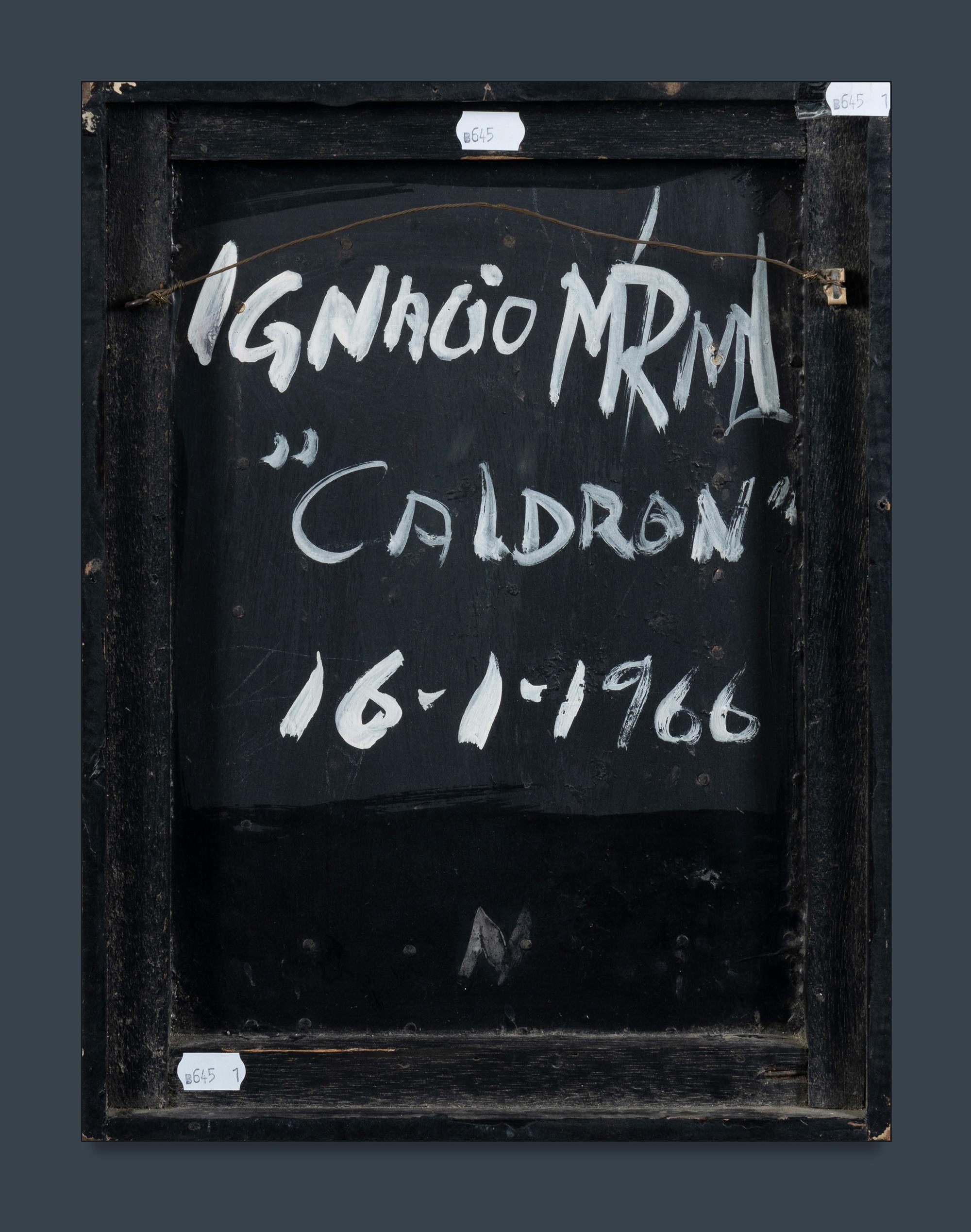 MARMOL, Ignacio Jose (1934-1994) 'Caldron,' 1966. Signed and inscribed verso. Mixed Media on Board 29x21.5cmEstimate $350-550
