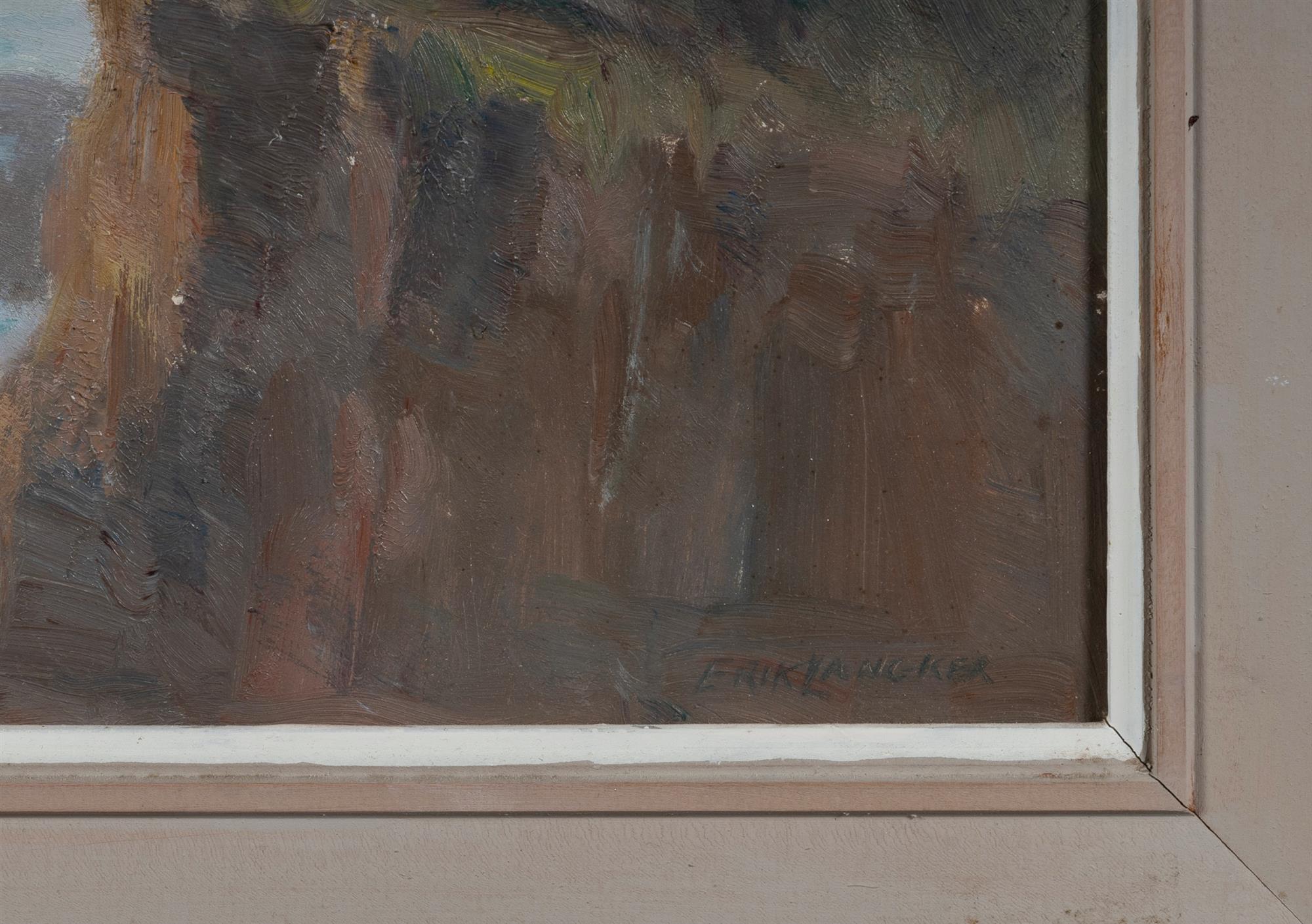 LANGKER, Erik (1898-1982) 'Into the Light, Broken Bay [NSW]' Artist label verso, with additional hand-written letter from the artist. Oil on Board 60x75cmEstimate $400-700
