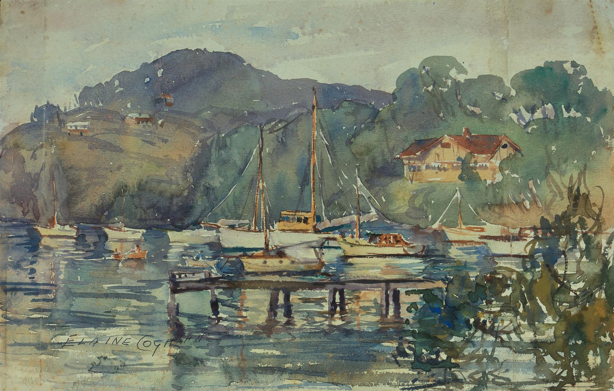 COGHLAN, Elaine (1897-1989) Bayview near Mona Vale,' (25.5x40cm);' N.S.W. Landscape (unsigned - 29x39cm); & Country Farm (unsigned - 25.5x28cm). W/Clr (3) PROVENANCE: Belinda Foy, great niece of the artist.Estimate $200-400