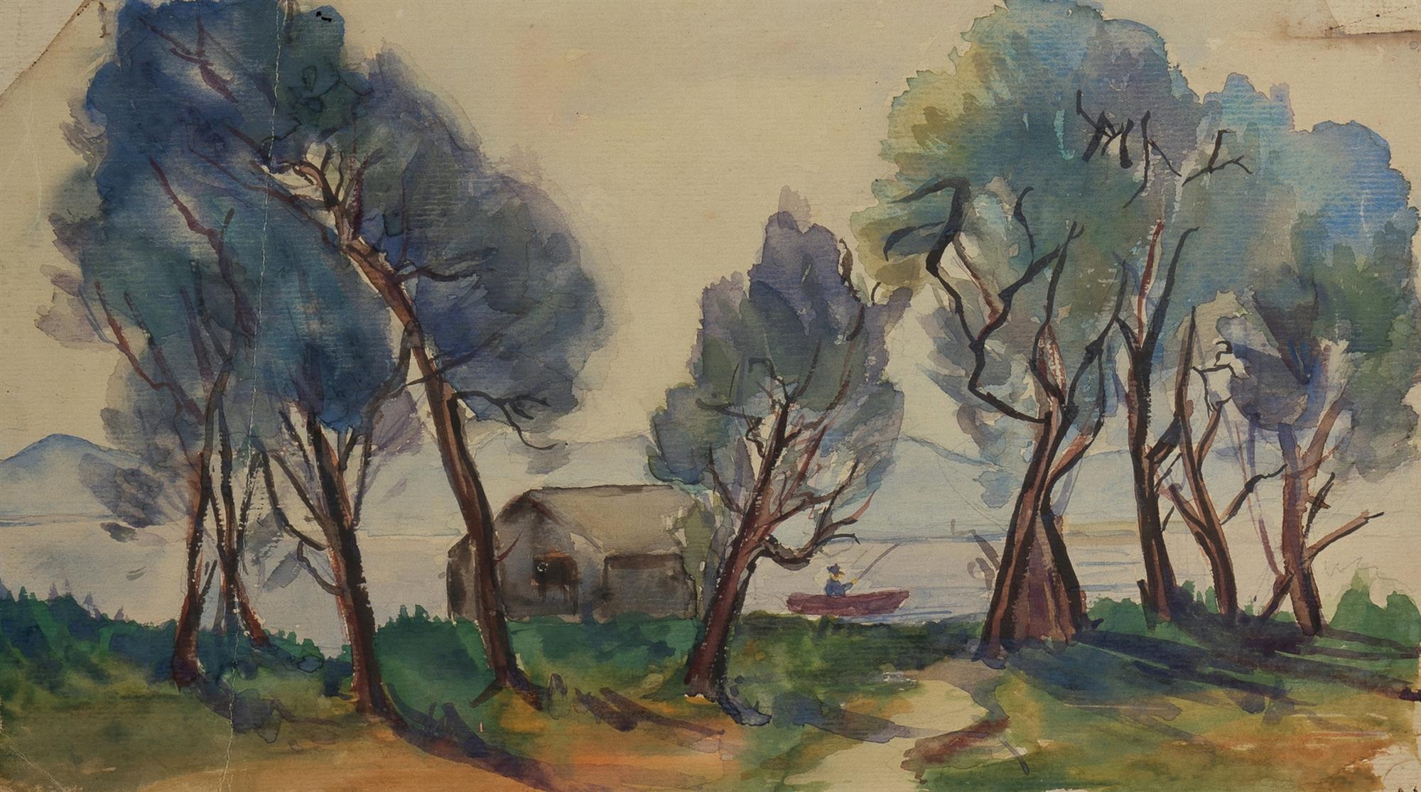 COGHLAN, Elaine (1897-1989) (2) Harbour View with Skiffs (19x28.5cm); & Fisherman and Boathouse (unsigned - 17x29.5cm). W/Clr (2) PROVENANCE: Belinda Foy, great niece of the artist.Estimate $80-150
