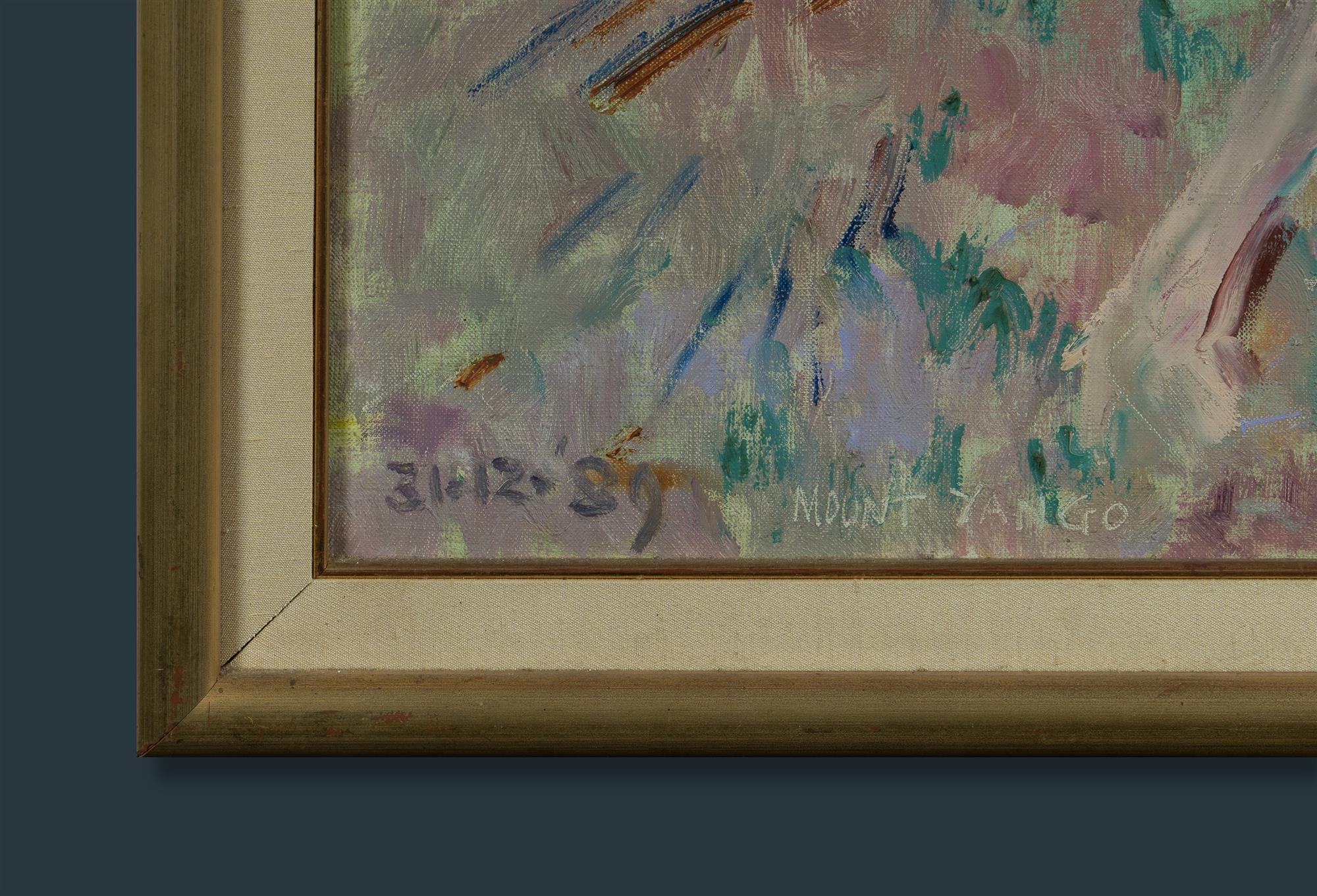 PUGH, Clifton Ernest (1924-1990) 'Mount Yango [Mount Yengo, N.S.W.]' 1989. Unsigned. Dated 31.12.89 and titled lower left. Label verso stating '41 Mt Yango'. Oil on Linen 109.5x89.5cm PROVENANCE: Dailan Pugh, son of the artist.Estimate $5,000-8,000