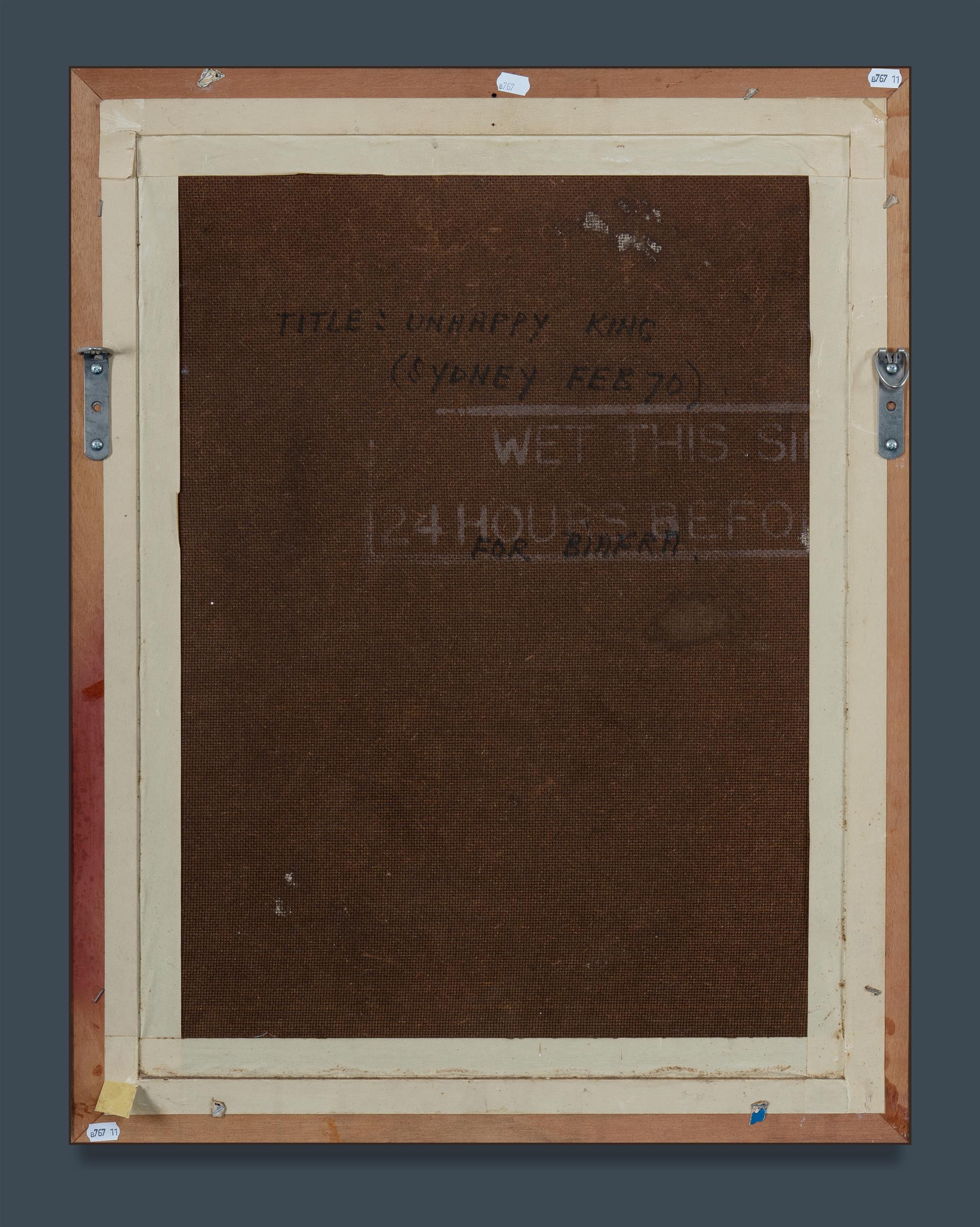 MILGATE, Rodney Armour (1934-2015) 'Unhappy King,' 1970. Inscribed verso. Oil on Board 60x44cm PROVENANCE: Davidson Auctions, Sydney, 14th June 2008 (lot 181).Estimate $400-700