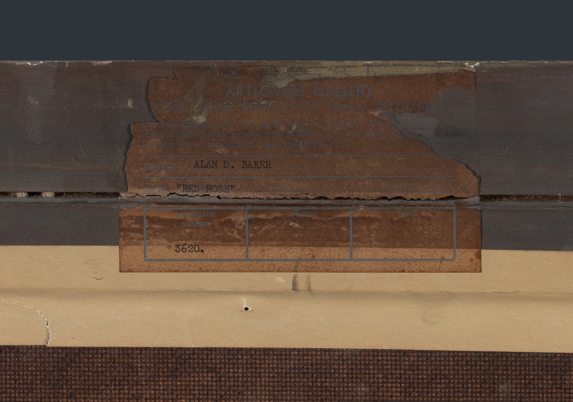 BAKER, Alan Douglas (1914-1987) 'Red Roses' Art Lovers Gallery, Sydney, label verso. Oil on Board 29.5x37cmEstimate $700-1,200