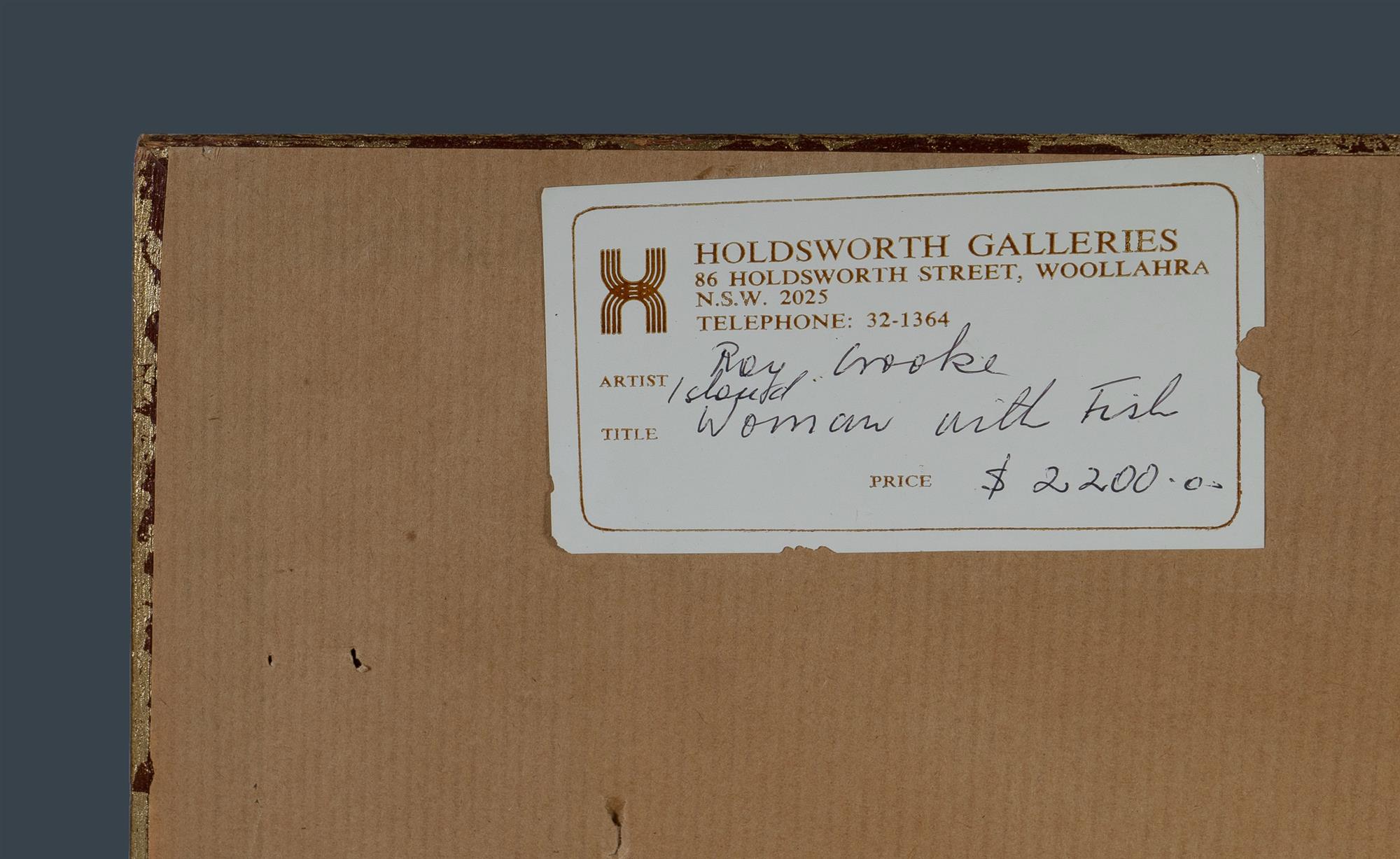 CROOKE, Ray (1922-2015) 'Woman with Fish' Holdsworth Galleries, Sydney, label verso. Oil on Canvas on Board 60x45cmEstimate $8,000-12,000
