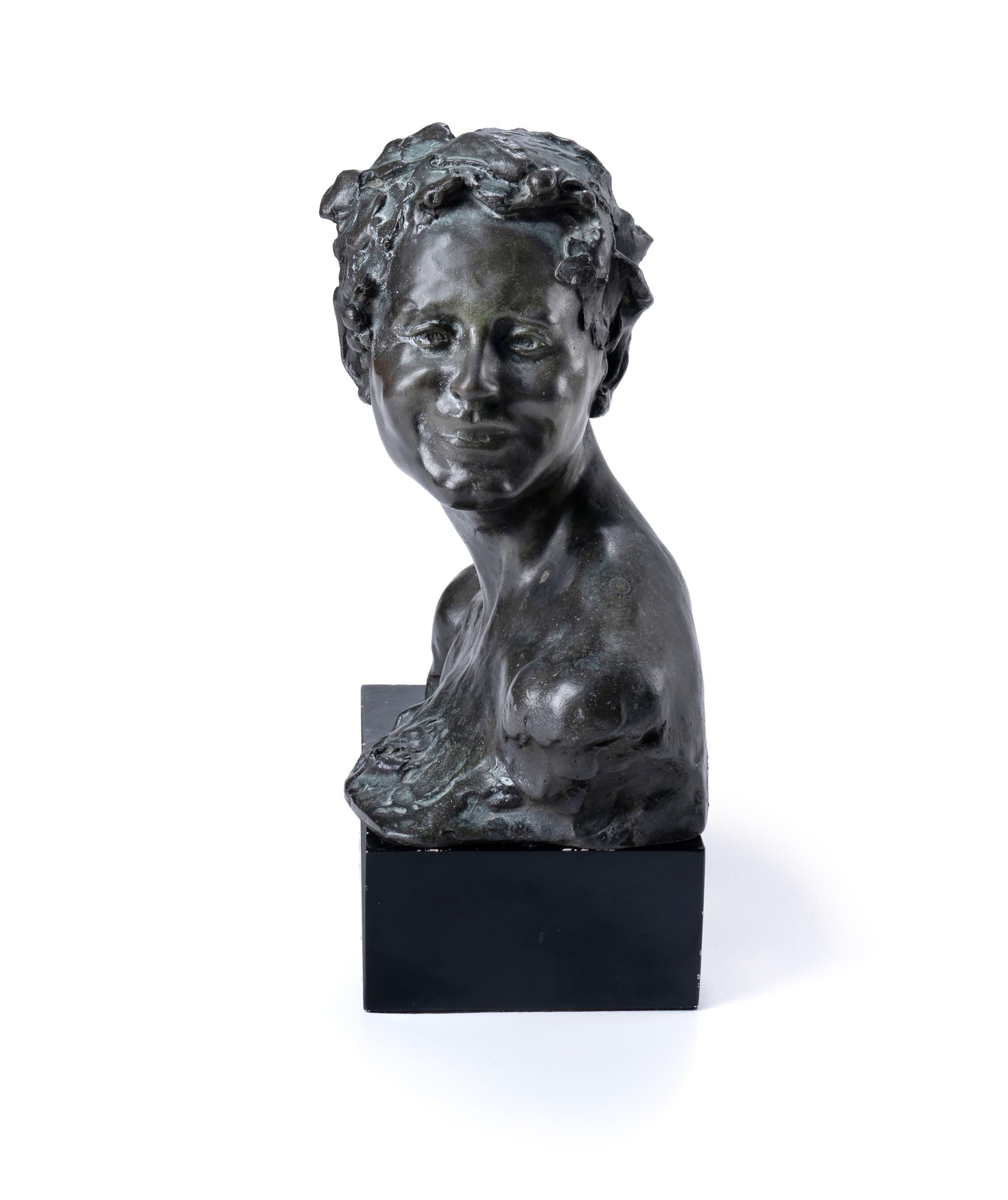 PINA, Alfredo (Italian 1883-1966) 'Head of Bacchus' Signed verso 'A. Pina', and with foundry seal 'Cire Perdue AG Paris'. Bronze on Wooden Plinth H25cm PROVENANCE: Christie's, Sydney, 3 October 1973 (lot 301); private collection, Sydney.Estimate $1,000-2,000