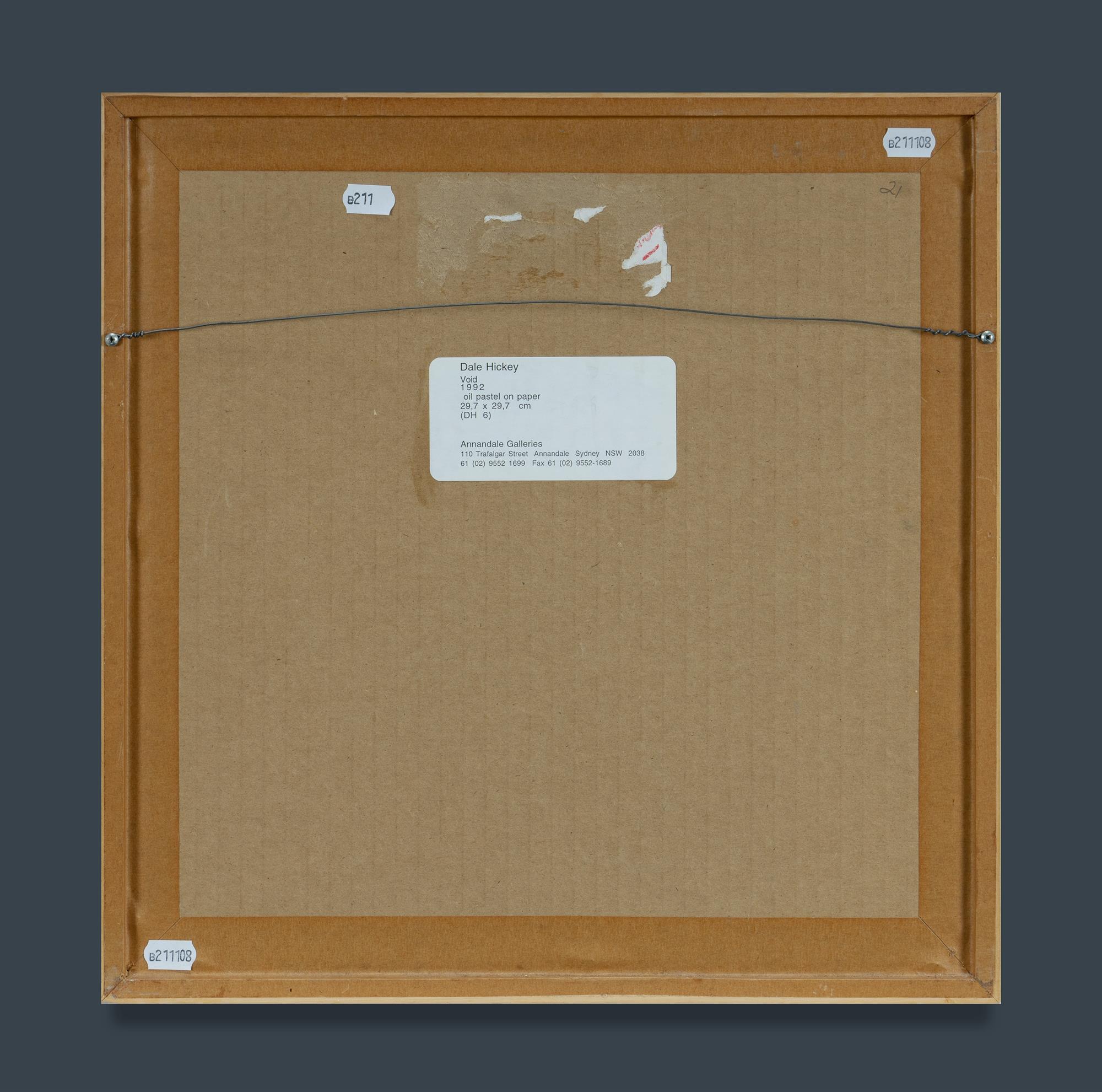 HICKEY, Dale (b.1937) 'Void,' 1992. Annandale Galleries, Sydney, label verso. Oil Pastel on Paper 29.5x29.5cmEstimate $600-900