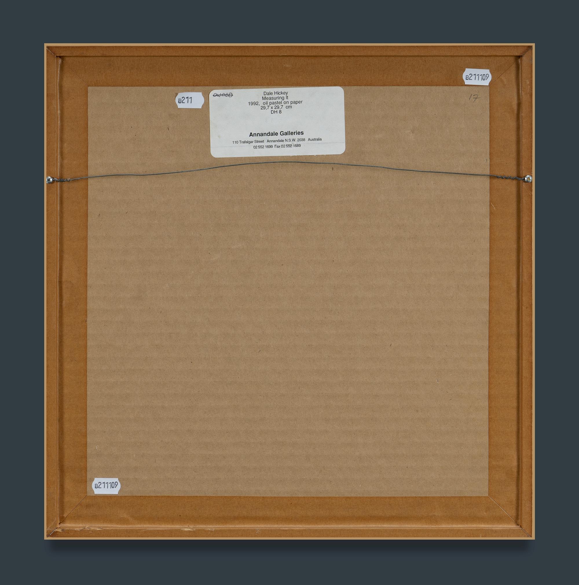 HICKEY, Dale (b.1937) 'Measuring It,' 1992. Annandale Galleries, Sydney, label verso. Oil Pastel on Paper 29.5x29.5cmEstimate $600-900