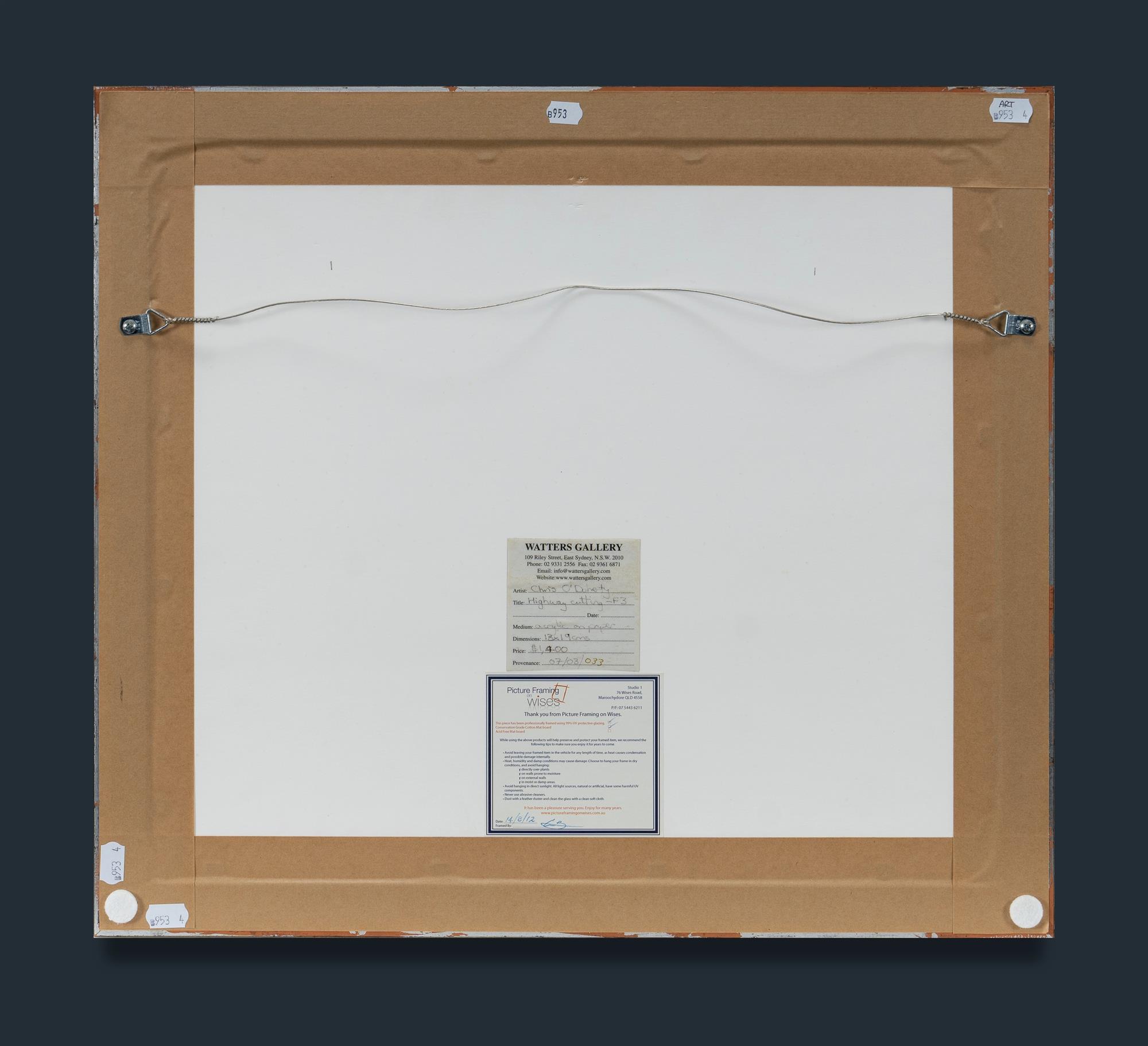 MOMBASSA, Reg (Chris O'Doherty) (b.1951) 'Highway Cutting - F3,' 2007. Ex Watters Gallery, Sydney (label verso) Acrylic on Paper/Card 13x19cm (image)Estimate $1,000-2,000
