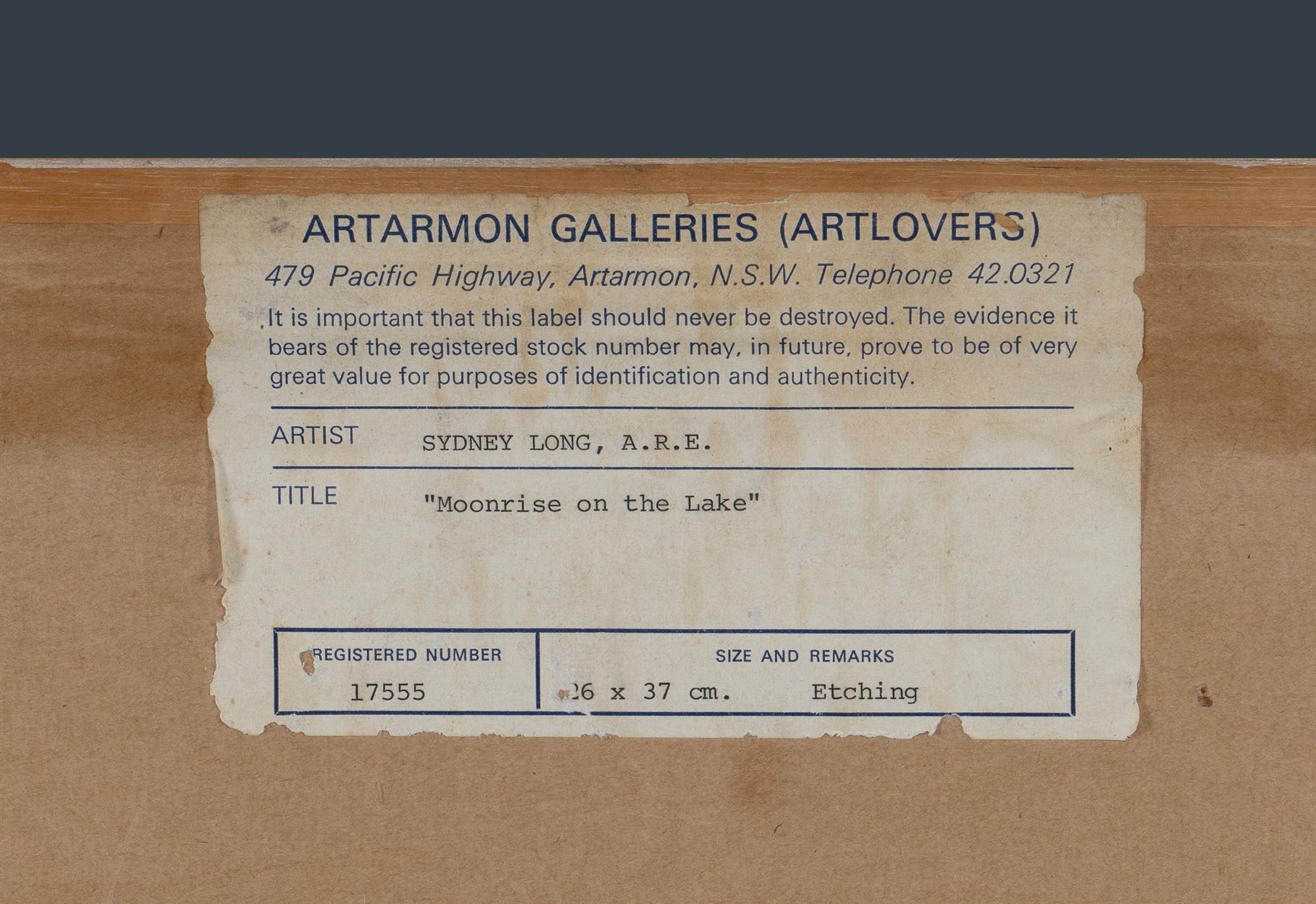 LONG, Sydney (1871-1955) 'Moonrise on the Lake' Label verso for Artarmon Galleries, Sydney (stock no.17555) Aquatint (Blue) 34/60 26x36.5cm (image)Estimate $800-1,500
