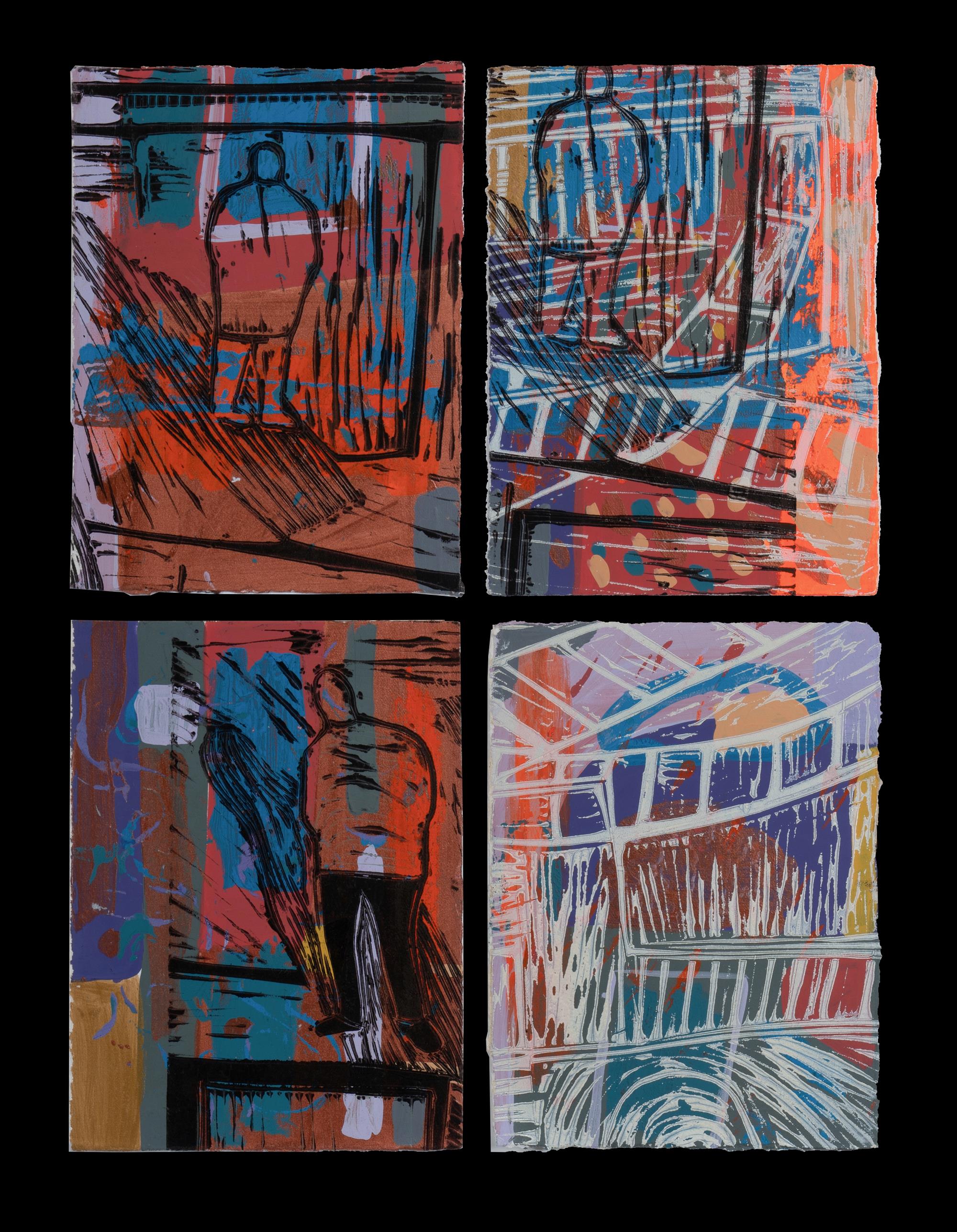 Artist Unknown, (8) Standing Figure in City Settings Unsigned Acrylic on Paper (8) 19x14cm approx. each PROVENANCE: Deceased Estate, QLD.Estimate $80-150