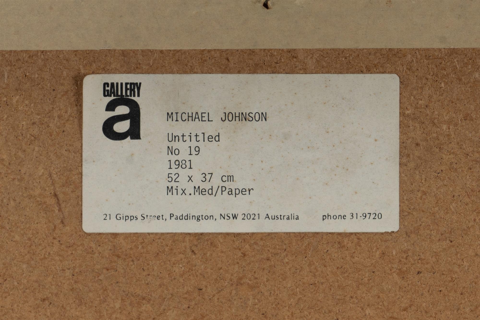 JOHNSON, Michael (b.1938) Untitled, No.19, 1981. Label verso for Gallery A, Paddington, Sydney. Mixed Media on Paper 52x37cmEstimate $1,000-1,500