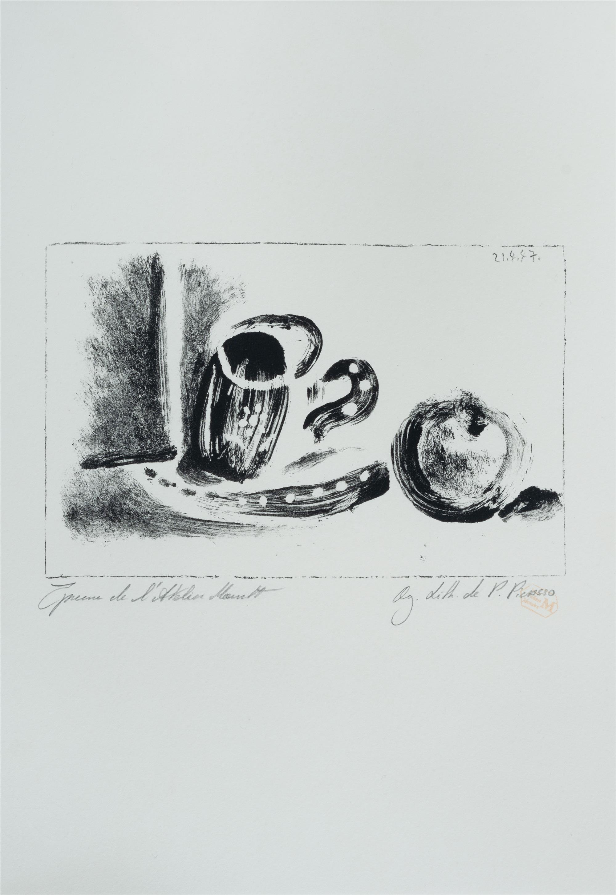 After PICASSO, Pablo (Spanish 1881-1973) La Tasse et la Pomme (The Cup and the Apple), 1947. Unsigned. Accompanied by certificate of authenticity, signed by Eric F. Mourlot, Paris, dated 26th August 2015 (provenance #5093) Lithograph P/P 16x24.5cm (image) 43x30cm (sight)