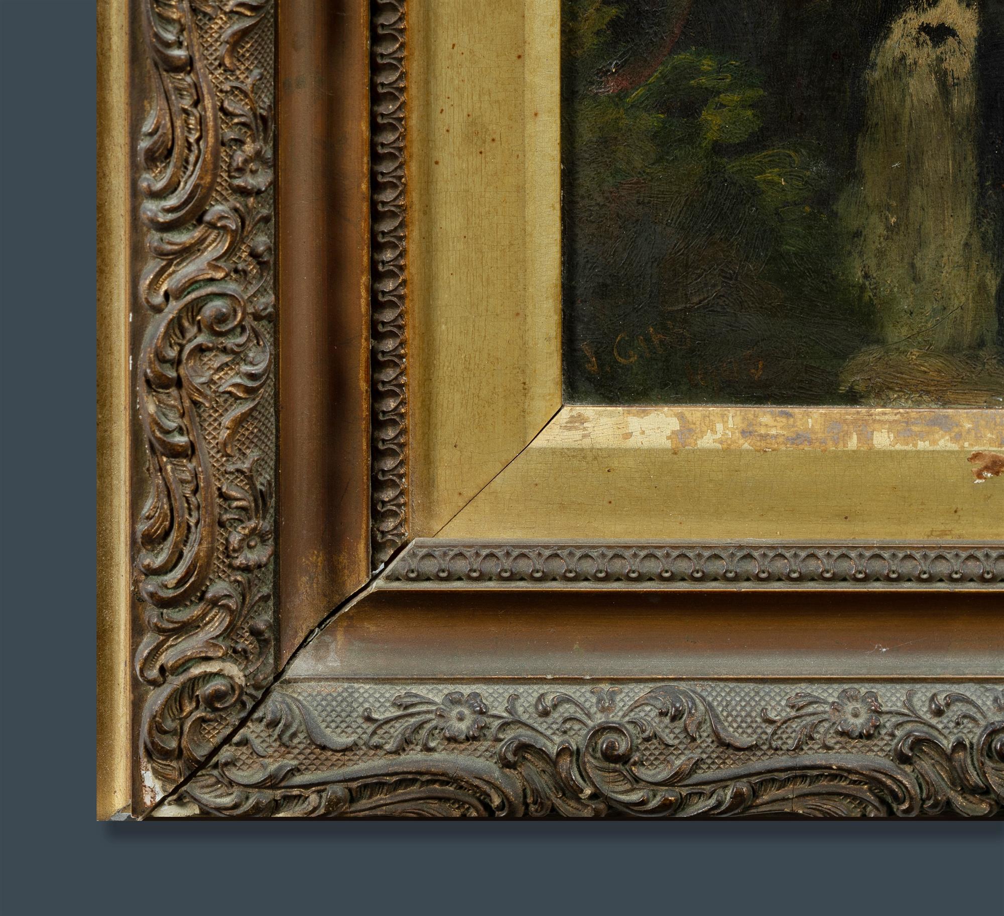 Attrib. GIBB, John (1831-1909) 'Kinloch Creek, Head of Lake Wakatipu [NZ]' 1905. Signed 'J. Gibb' and dated lower left. Titled verso, with frame maker label from J.W. Gibb, Christchurch. Oil on Board 46x29cmEstimate $800-1,500
