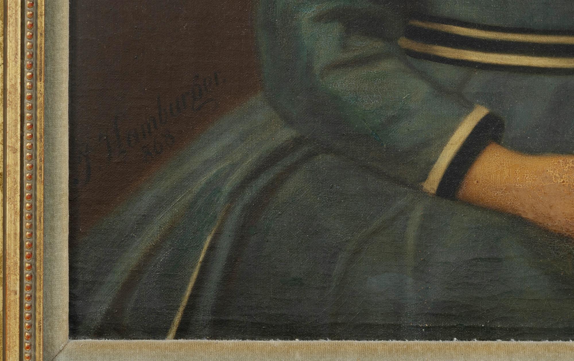 HAMBURGER, Julius (Slovakia 1830-1909) Portrait of Young Girl in Blue Dress, Holding Flower, 1868. Oil on Canvas on Board 63x50cmEstimate $300-600
