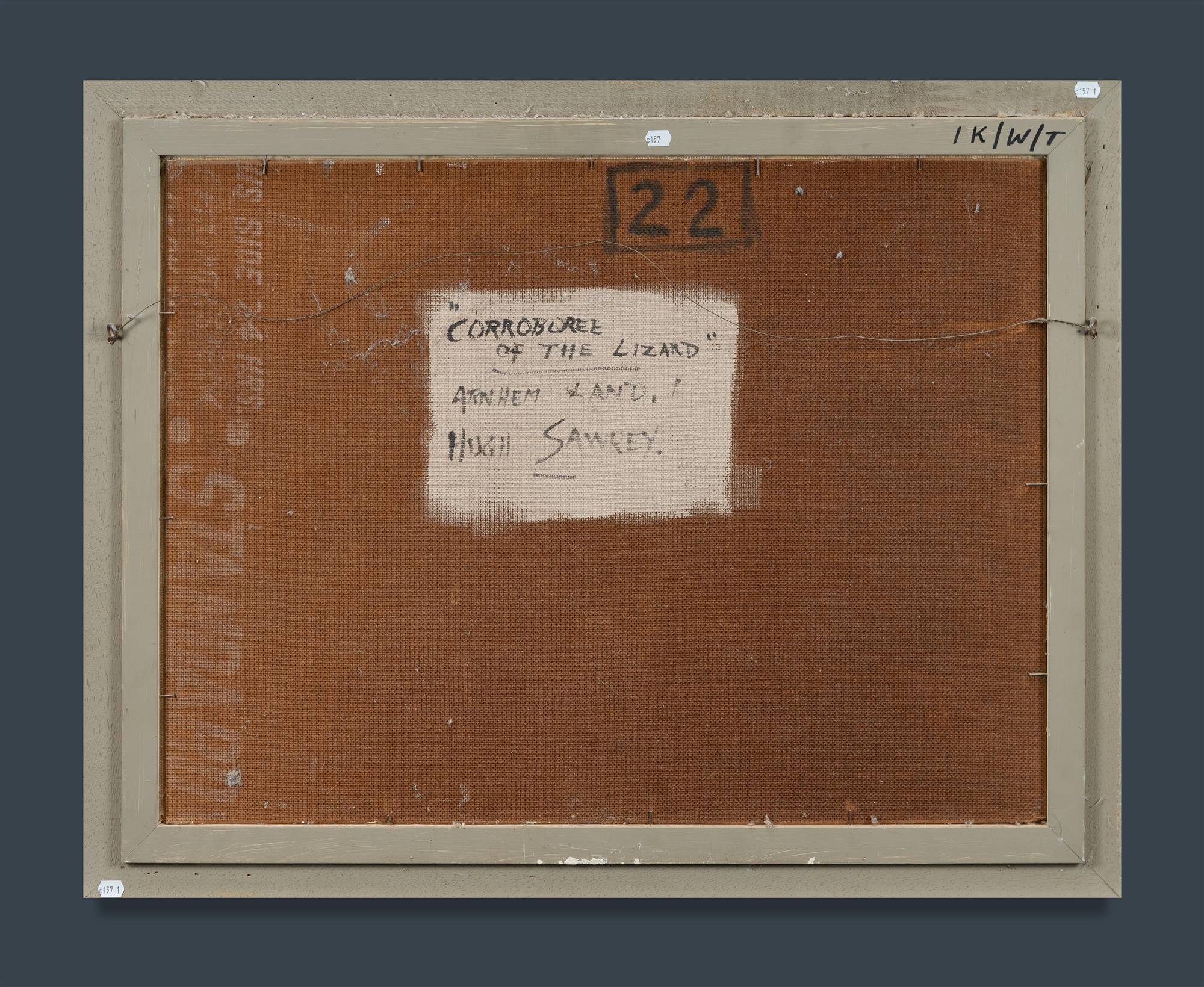 SAWREY, Hugh (1919-1999) 'Corroboree of the Lizard (Arnhem Land)' Oil on Masonite 45x60cmEstimate $3,500-5,500