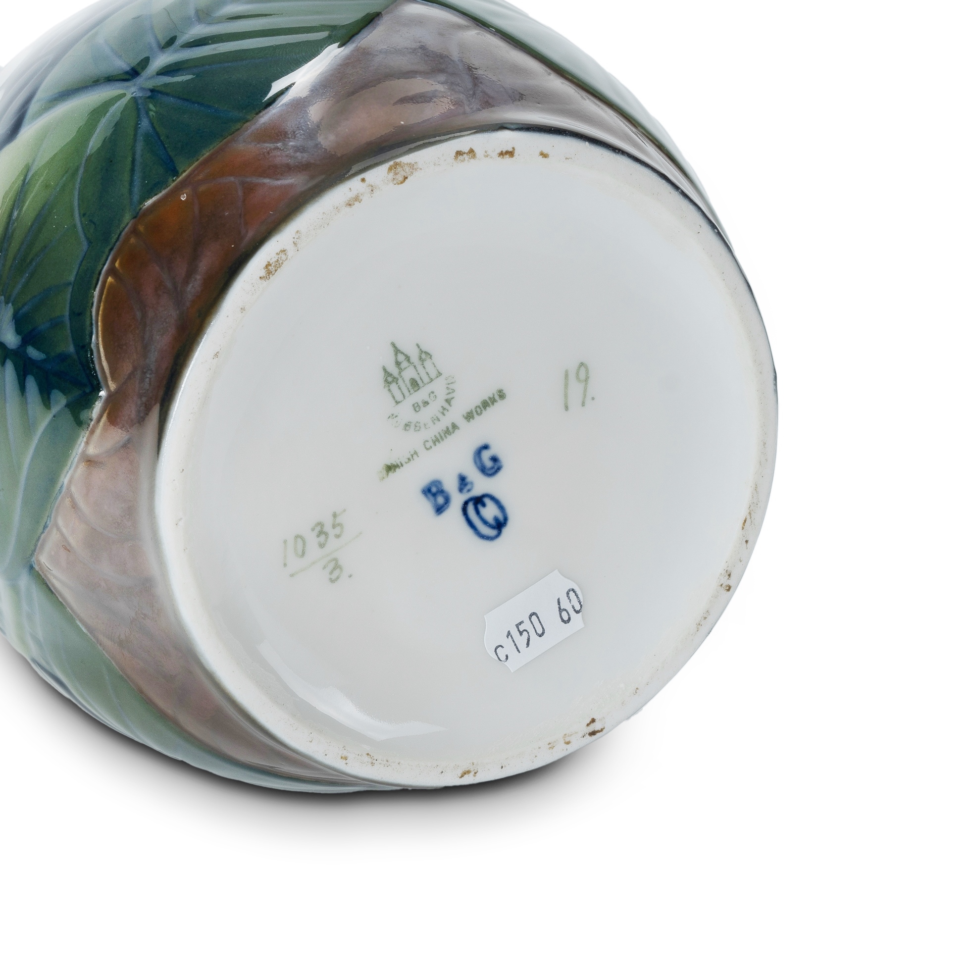 Bing and Grondahl Art Nouveau Porcelain Vase. Carved and moulded with lotus in relief c.1898. (H25cm)Estimate $100-300