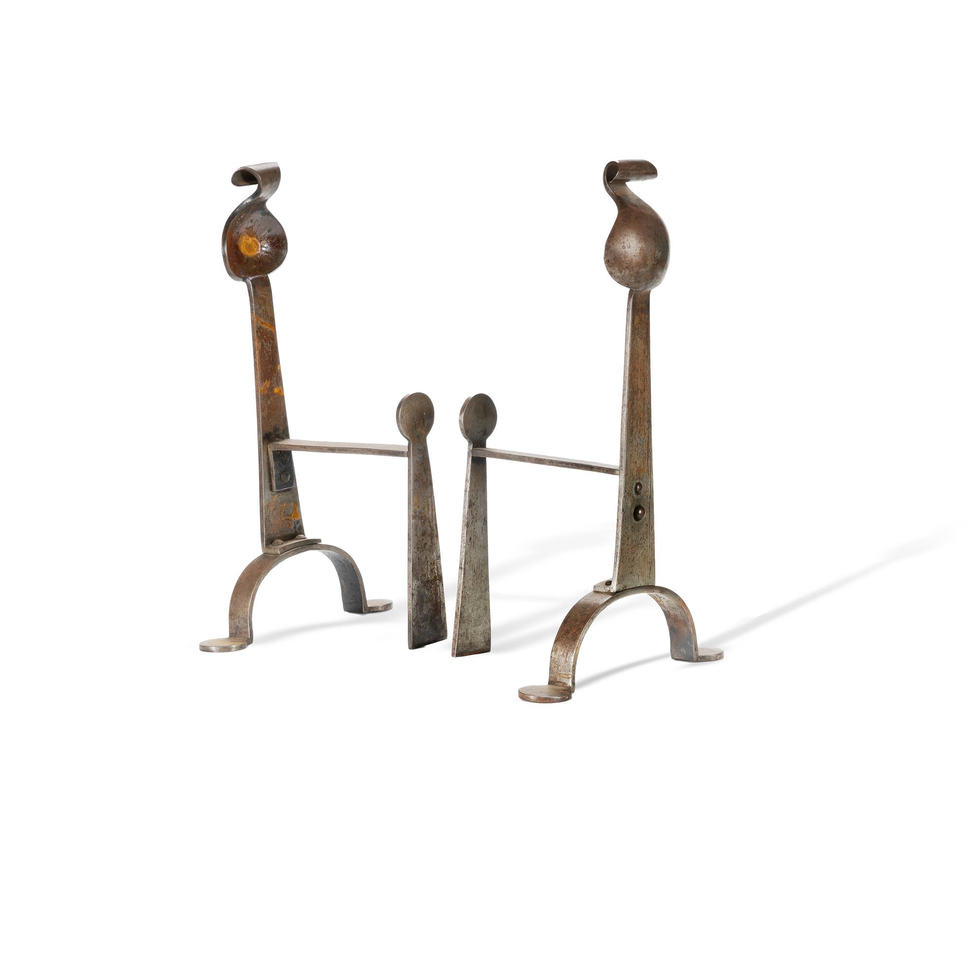 Pr British Arts & Crafts Wrought Iron Andirons.