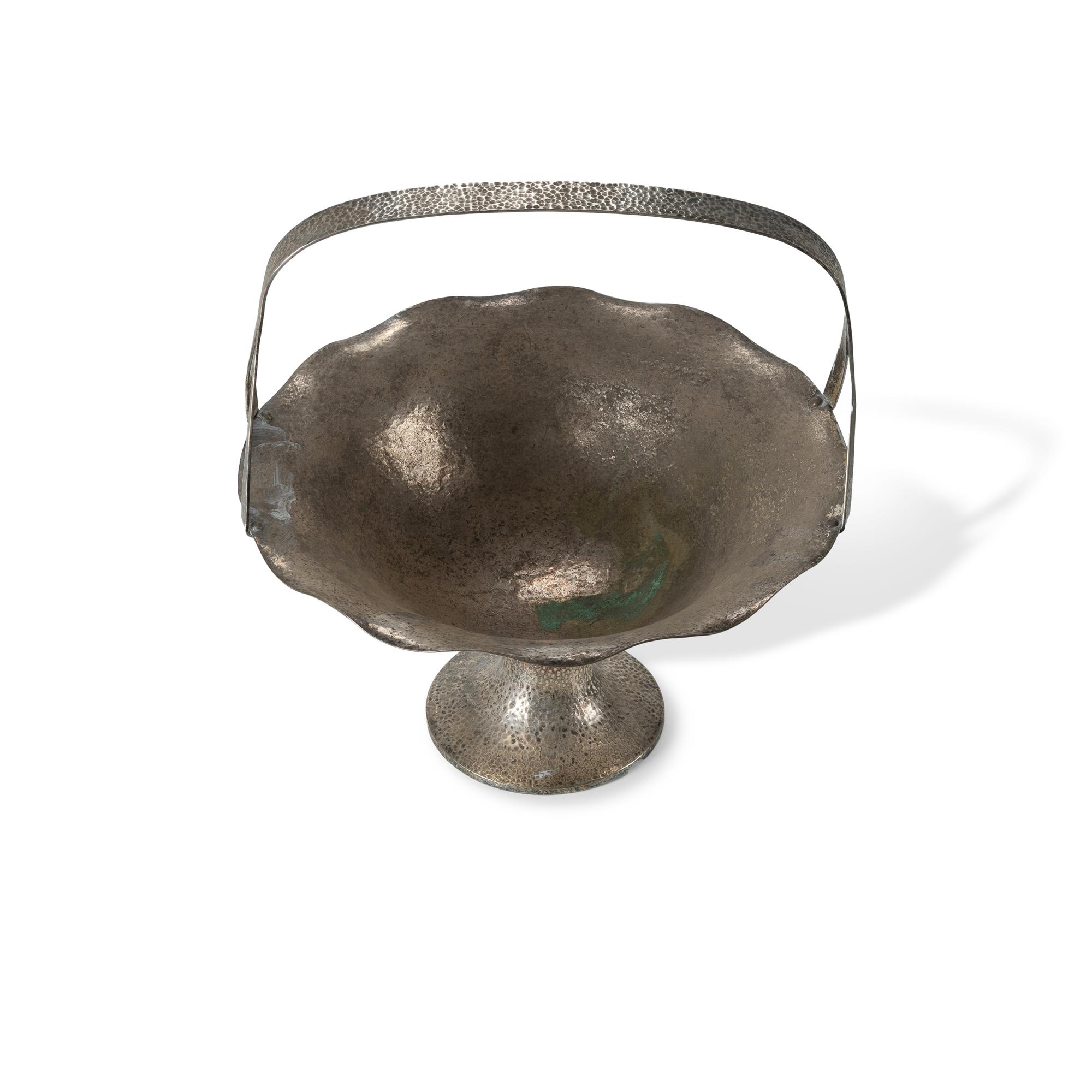 Joseph Heinrichs Paris & New York Silvered Hammered Copper Large Handled Basket. (H39cm Dia.34cm)Estimate $50-100