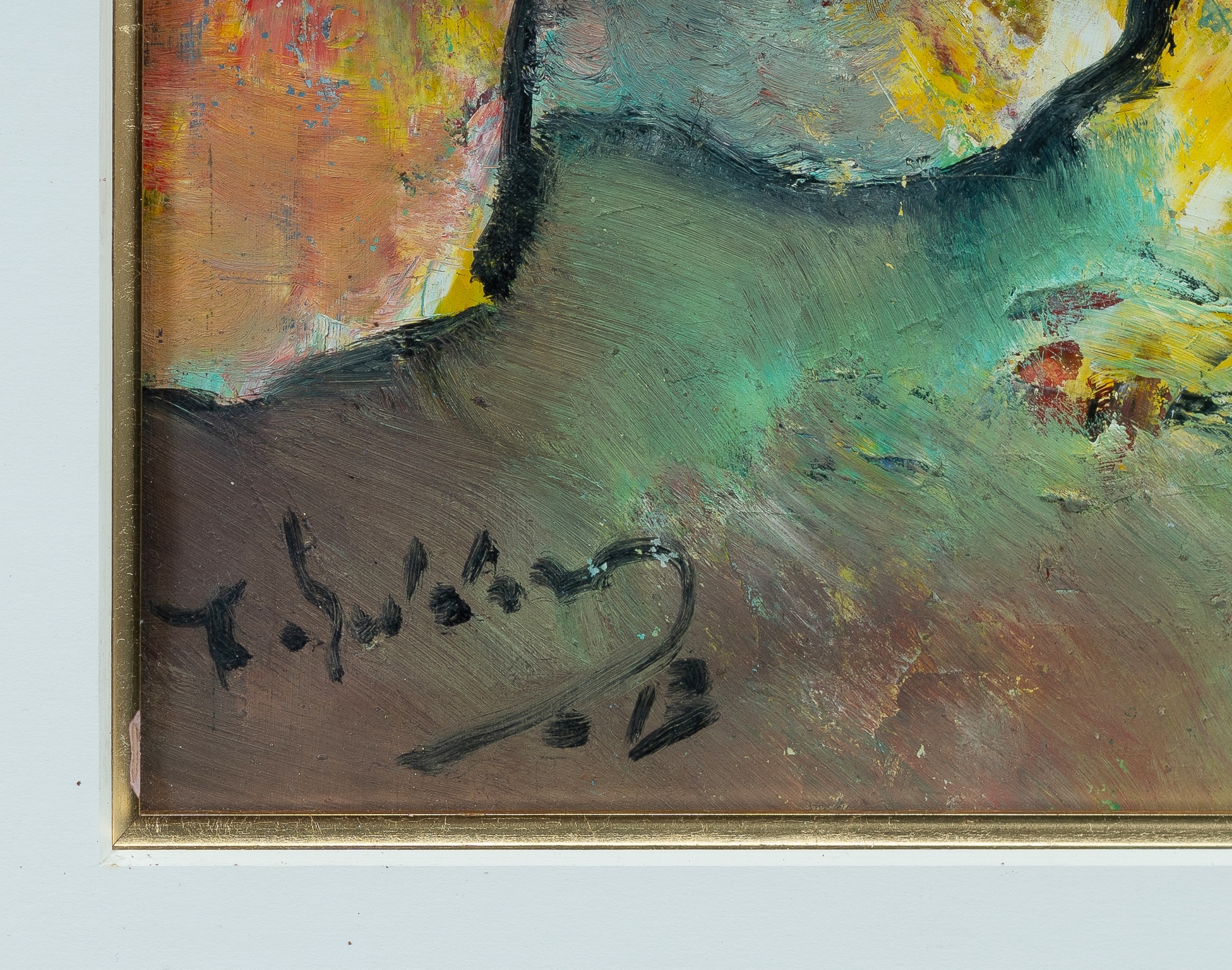 Artist Unknown, Signed Village Scene Signed illeg. lower left. Oil on Card 36.5x34.5cmEstimate $50-120