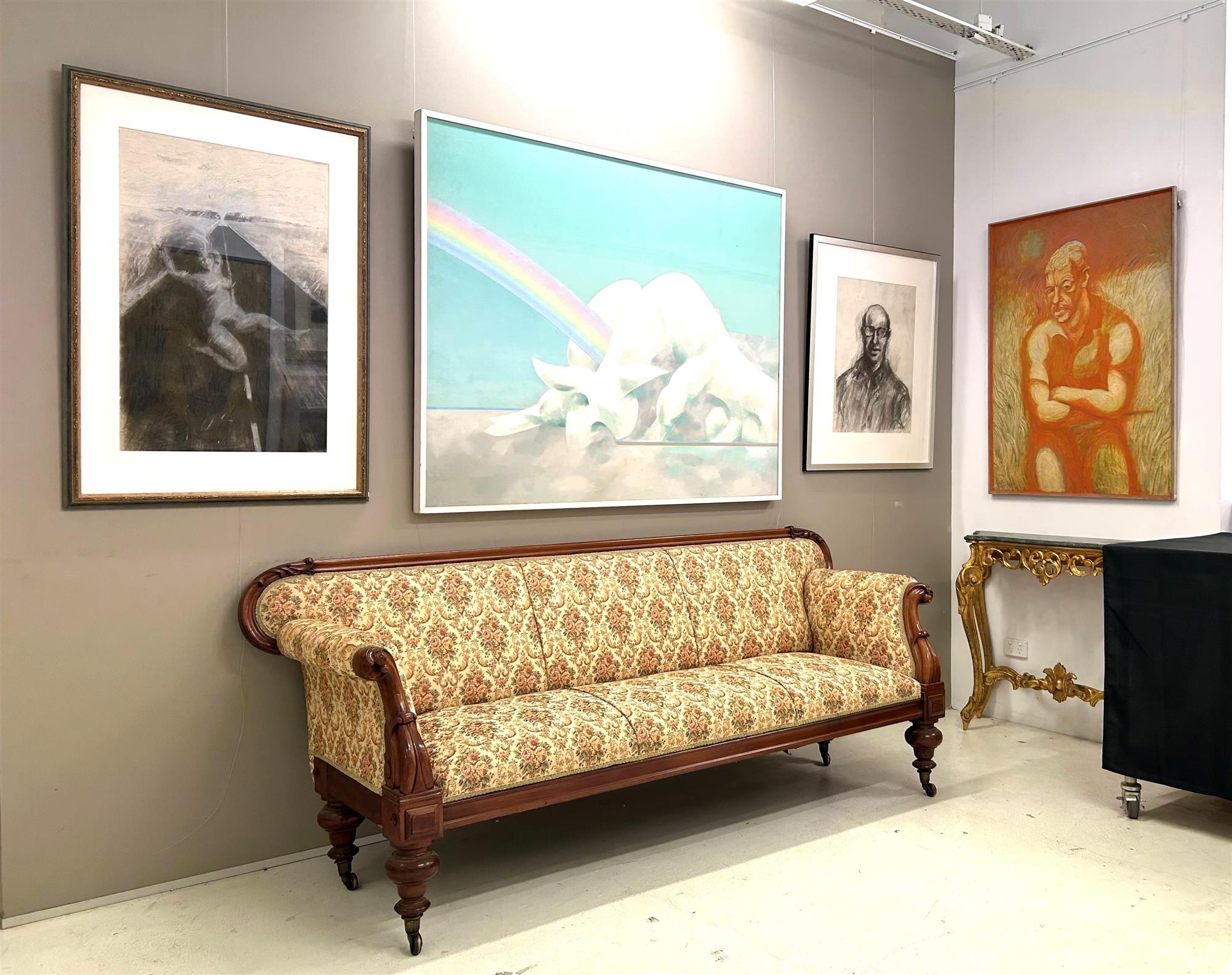 SHAW, Roderick Malcolm (1915-1992) 'Snow Bull,' 1973. (Snowy Mountain Series). Unsigned. Acrylic on Canvas 122x152cm PROVENANCE: Chrissie Shaw, daughter of the artist. EXHIBITIONS: Woolloomooloo Gallery, Sydney, 1970s. 'Artists as Social Commentators and Activists - Tracing the influence of Rod Shaw 1915-1992', Manly Art Gallery & Museum, 2008. Estimate $500-800