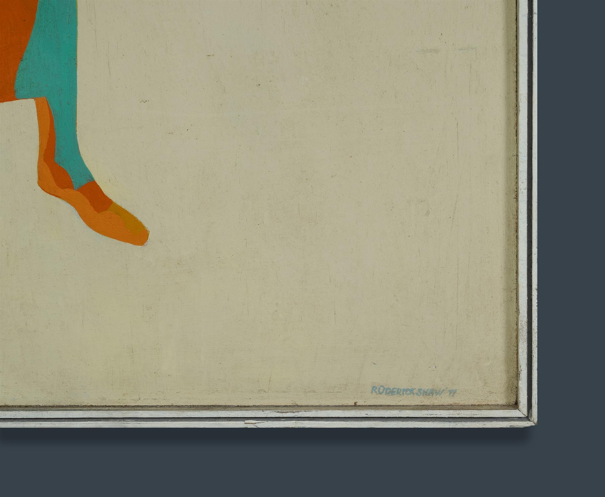 SHAW, Roderick Malcolm (1915-1992) 'Woman Fishing,' 1971. Signed and dated lower right; titled and inscribed verso. Acrylic on Board 92x123cm PROVENANCE: Chrissie Shaw, daughter of the artist.Estimate $300-500