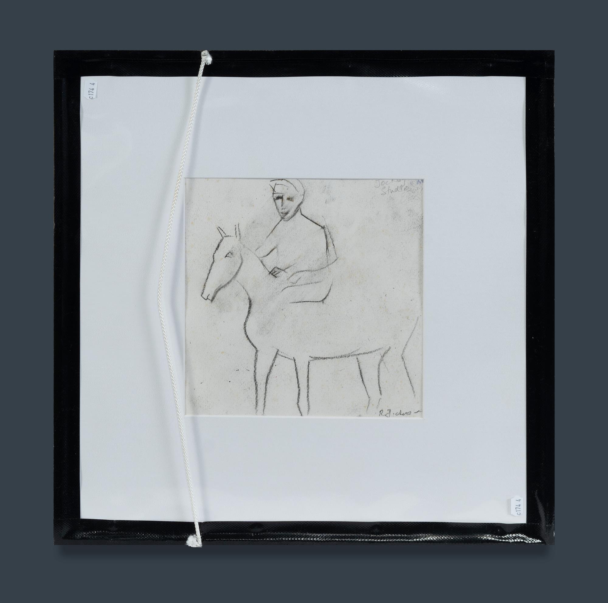 DICKERSON, Robert (1924-2015) Jockey on Horse Signed lower right. Also, with signed 'Jockey Study' verso. Charcoal 22.5x22cm PROVENANCE: Family of the artist.Estimate $1,200-2,000