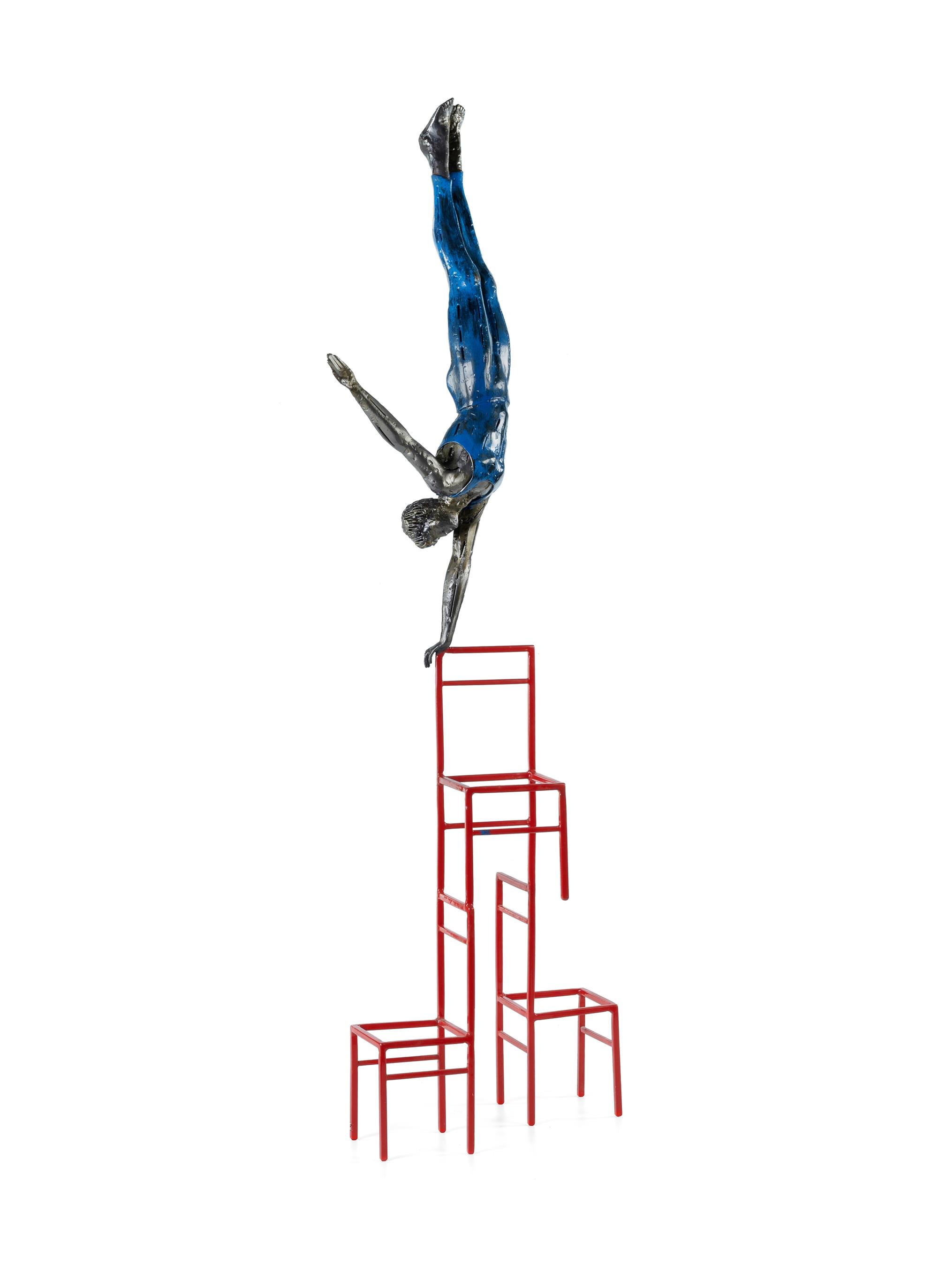 SEFFRIN, Nickolaus (German/Australian b.1931) 'Balance' Initialled 'N' to chair leg. Mild Steel, Red Powdercoating & Applied Blue Finish 103x28x20cm PROVENANCE: Adrien Seffrin, son of the artist.Estimate $1,200-2,500