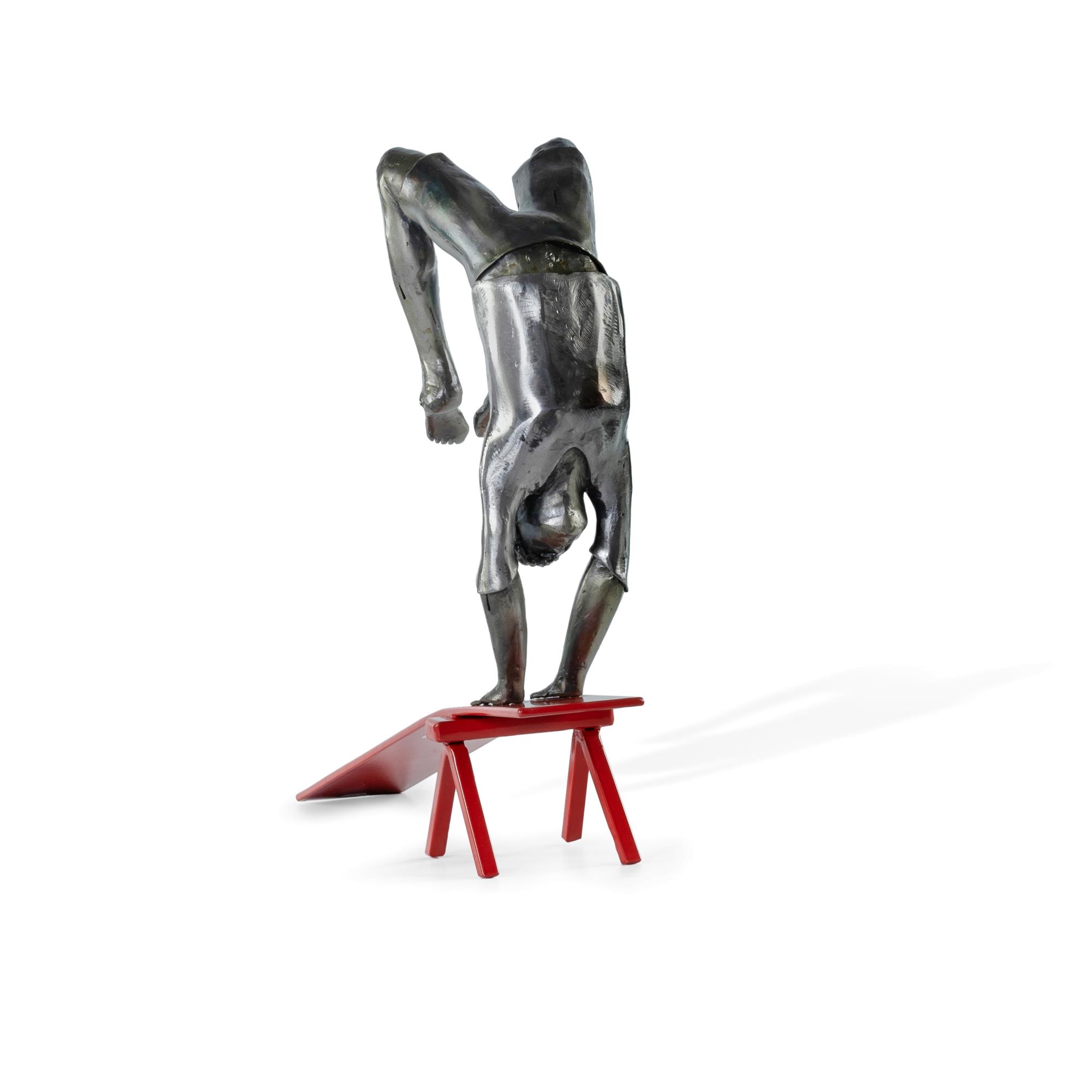 SEFFRIN, Nickolaus (German/Australian b.1931) 'Handstand' Initialled 'N' to base. Australian Galleries, Sydney, label to underside (#AG304173) Mild Steel with Powdercoating 43x49x12cm PROVENANCE: Adrien Seffrin, son of the artist.Estimate $800-1,500