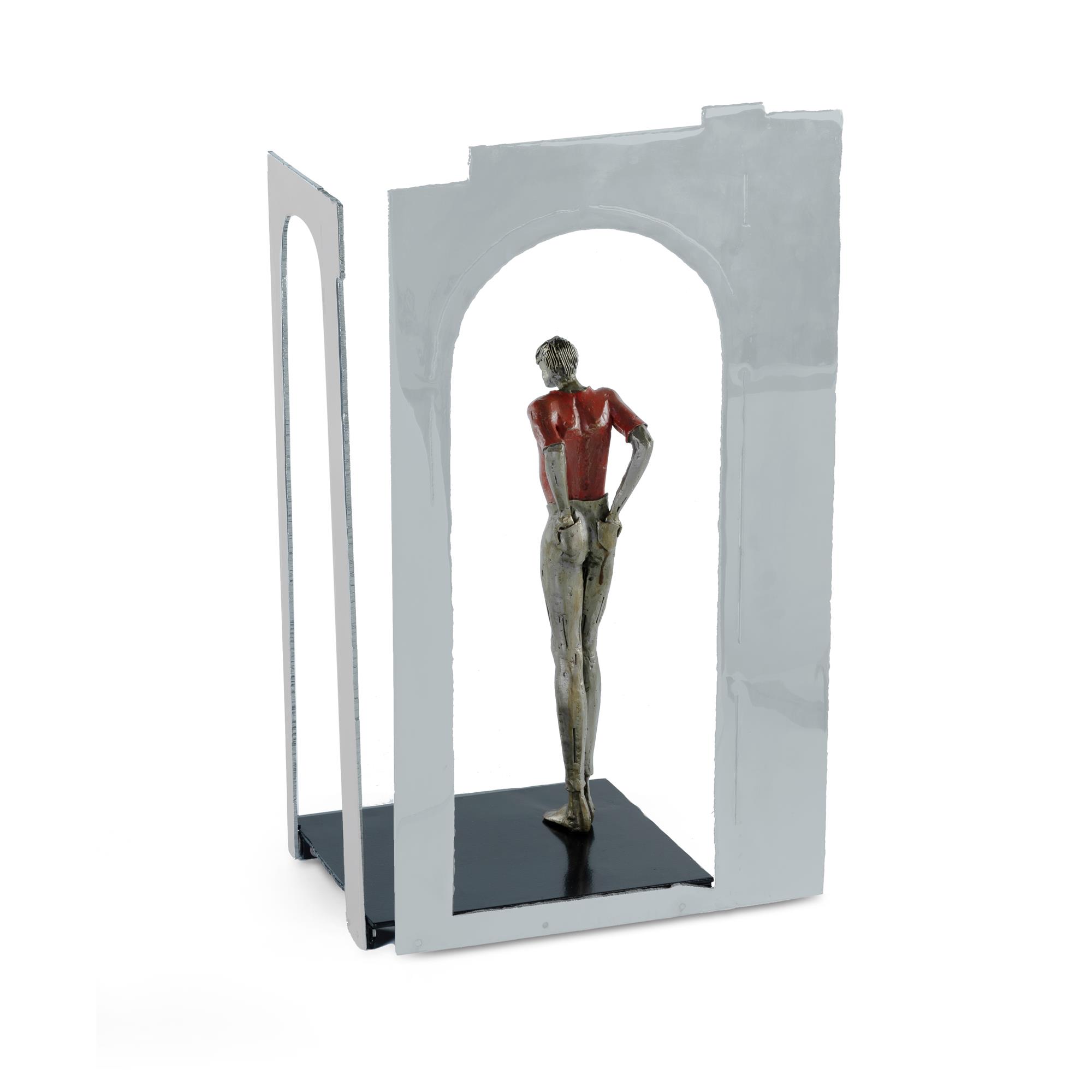 SEFFRIN, Nickolaus (German/Australian b.1931) 'The Arrival/Gallerie' Initialled 'N' to chrome back. Mild Steel with Powdercoating, Chrome-plating & Applied Colour 72x44x28cm PROVENANCE: Adrien Seffrin, son of the artist.Estimate $1,500-3,000