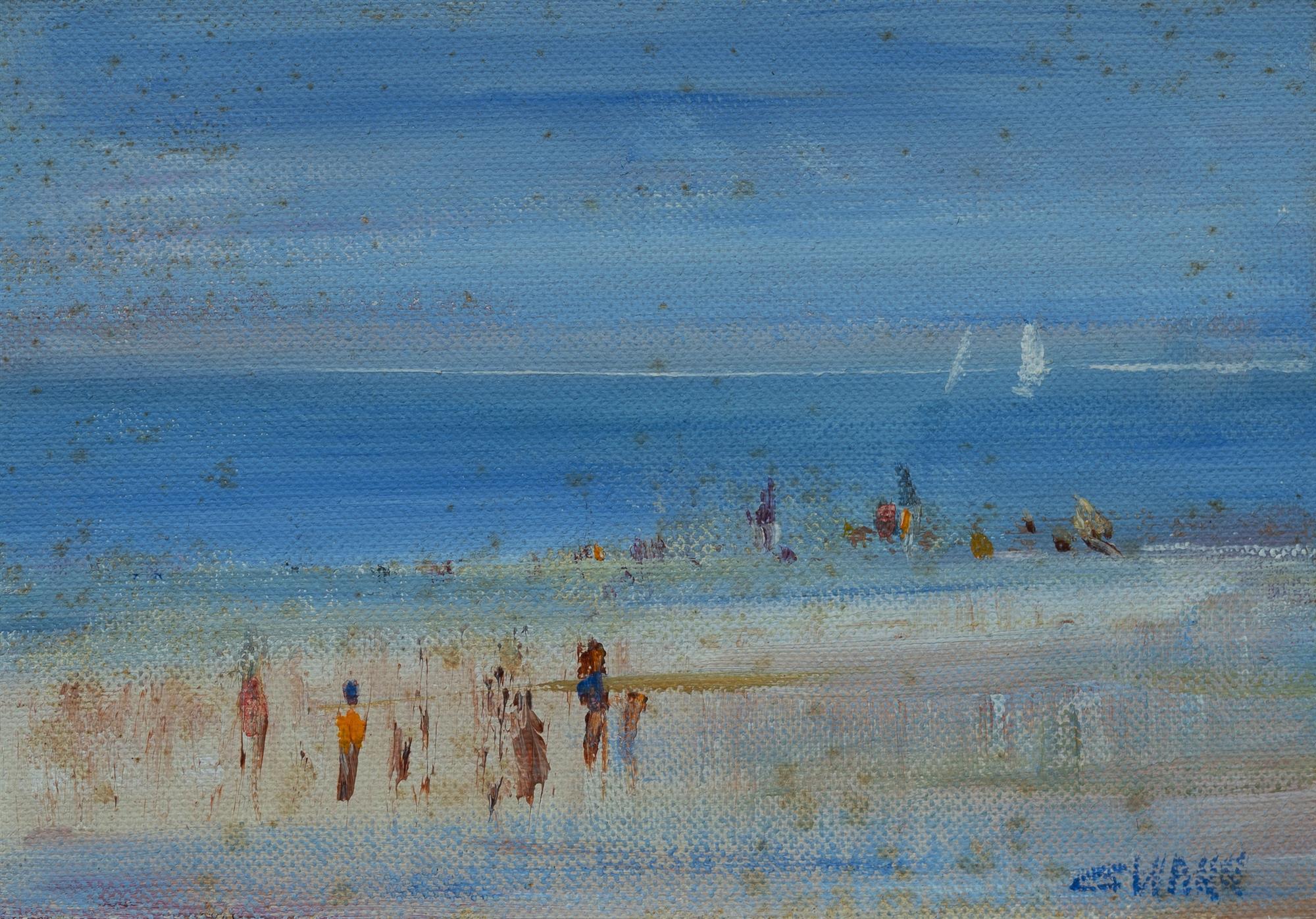 SWANN, Bruce (1925-1987) (2) 'Bathers', and 'Williamstown' Both with labels verso for Jolly Barry Gallery, Paddington, Sydney. Oil on Canvas on Board (2) 12x17.5cm (each)
