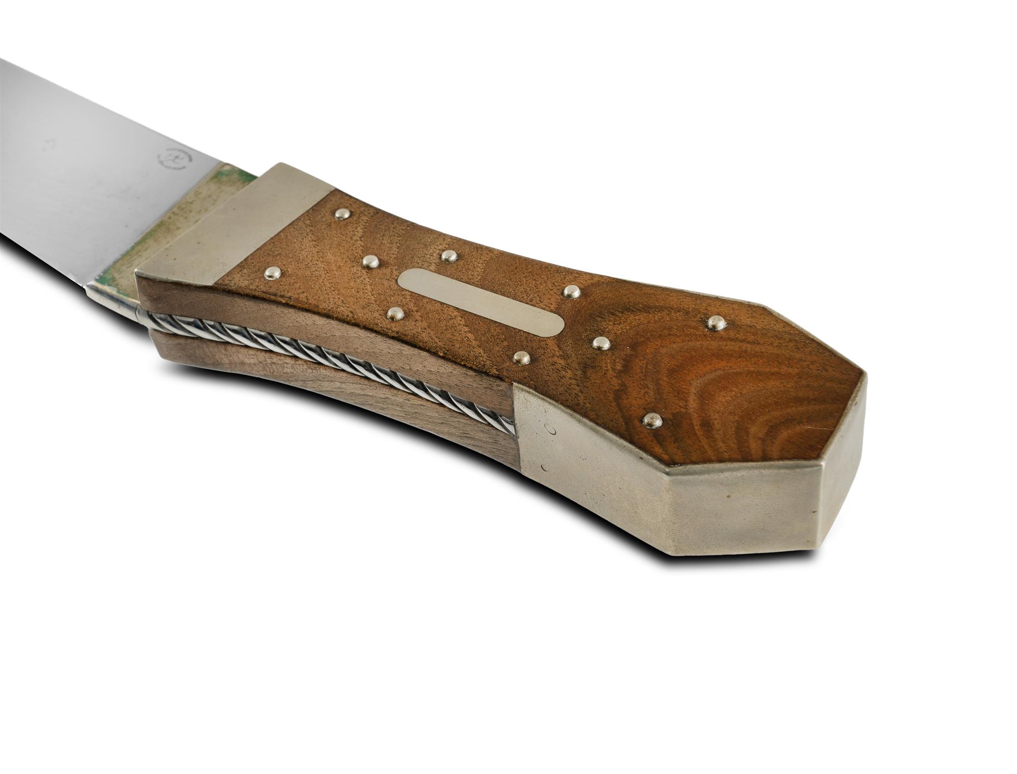 Large Handmade Custom 'Bushmans Edge' Replica Bowie Knife Jim Steele. Clip point blade, coffin shaped hilt, and leather sheath. (L48cm) PROVENANCE: From the collection of the late Warren MallardEstimate $100-300