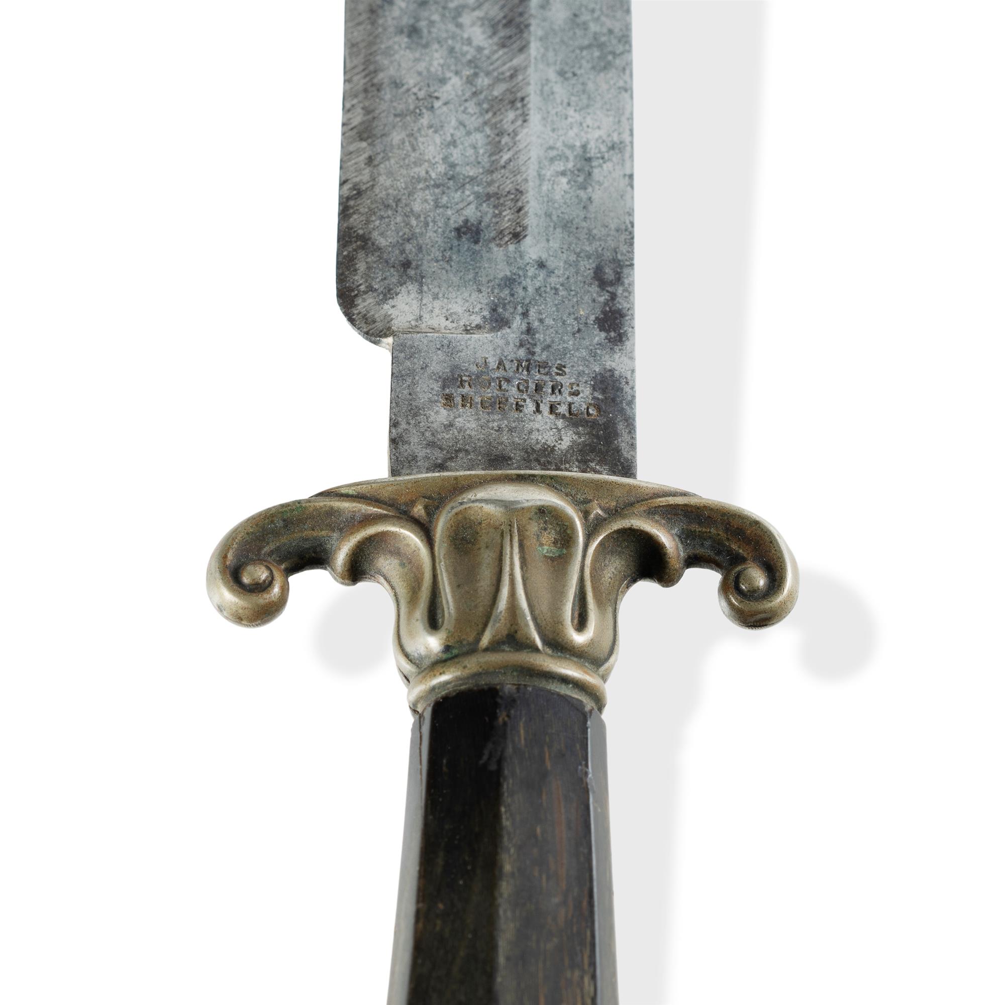 Early 19th C Spear Point Bowie James Rodgers, Sheffield. Pressed horn faceted hilt, hollow ground blade. (L35.5cm)Estimate $200-400