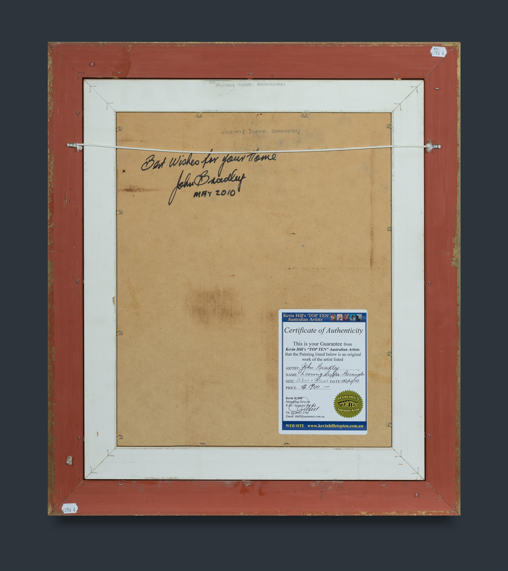 BRADLEY, John (b.1945) 'Morning Cuppa - Barrington,' 2010. Oil on Board 35x29cmEstimate $200-400