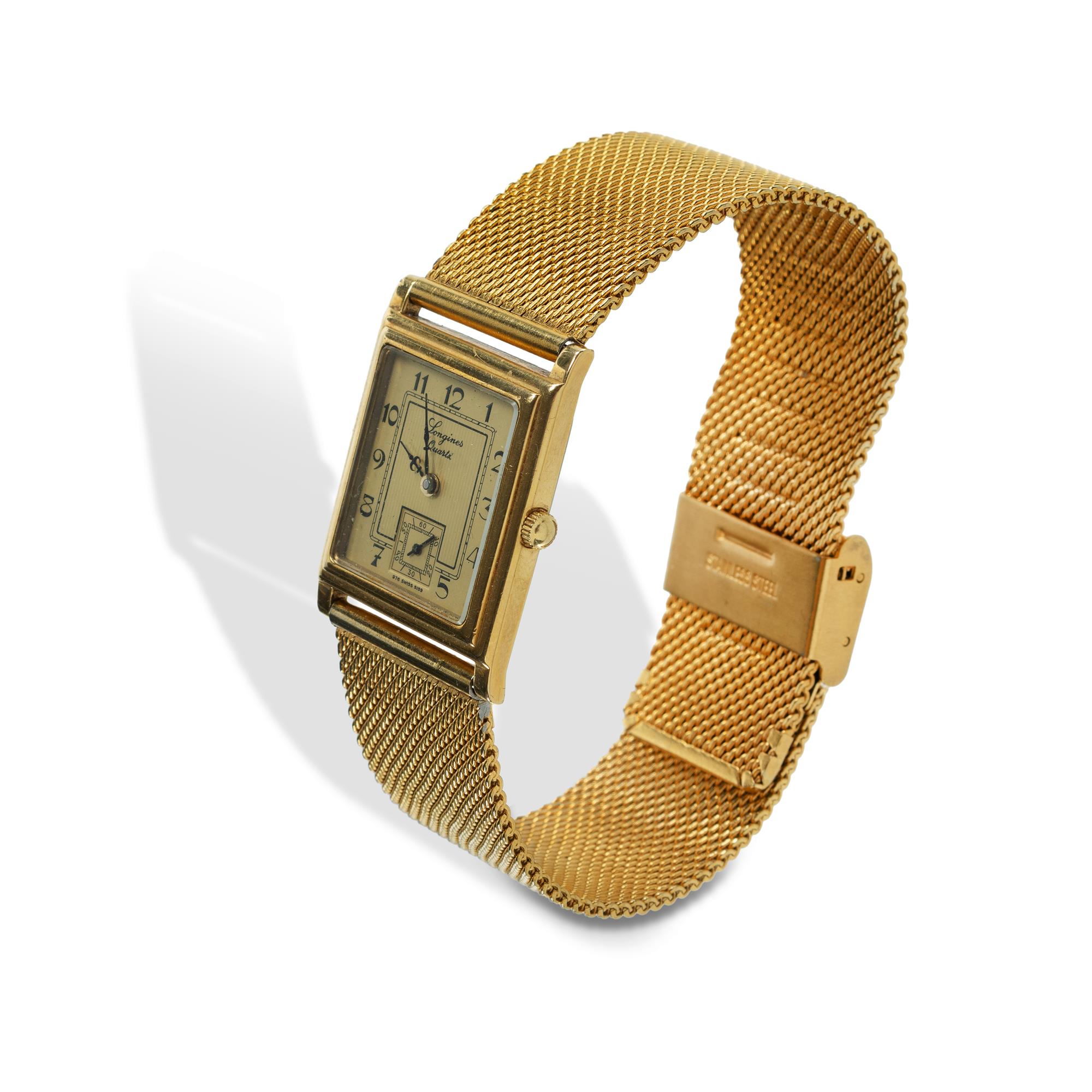 Longines 150 Anniversary Gents Tank Watch Gold-plated case and band, circa 1980s. Serial No.56349809.Estimate $150-300